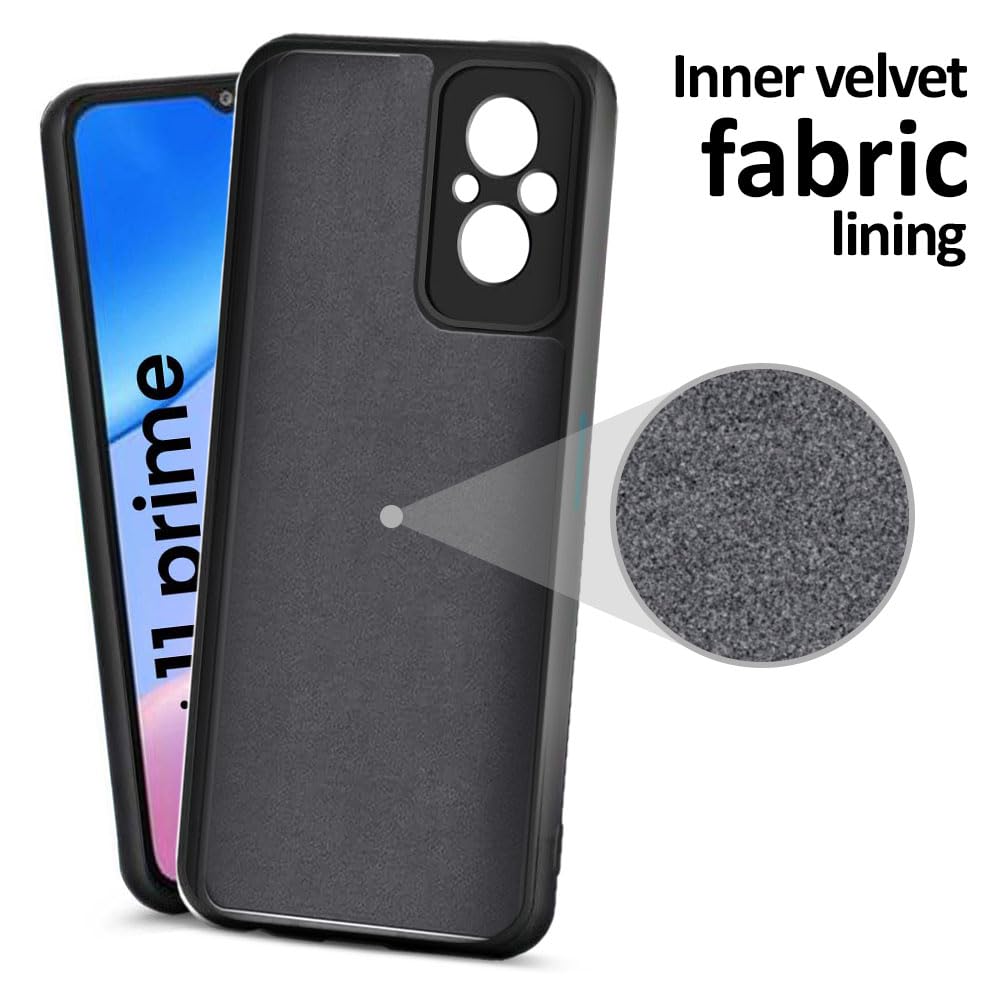 Back Cover for Xiaomi Redmi 11 Prime 4G | Ultra Slim Soft Rubberised Case | Inner Velvet Fabric Lining | Matte Silicone Flexible Mobile Case | Camera Protection – Black