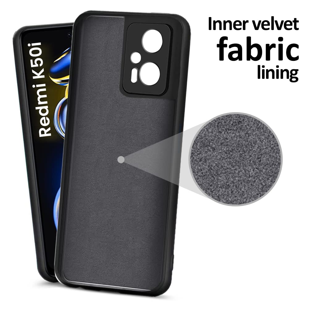 Back Cover for Xiaomi Redmi K50i | Ultra Slim Soft Rubberised Case | Inner Velvet Fabric Lining | Matte Silicone Flexible Mobile Case | Camera Protection – Black