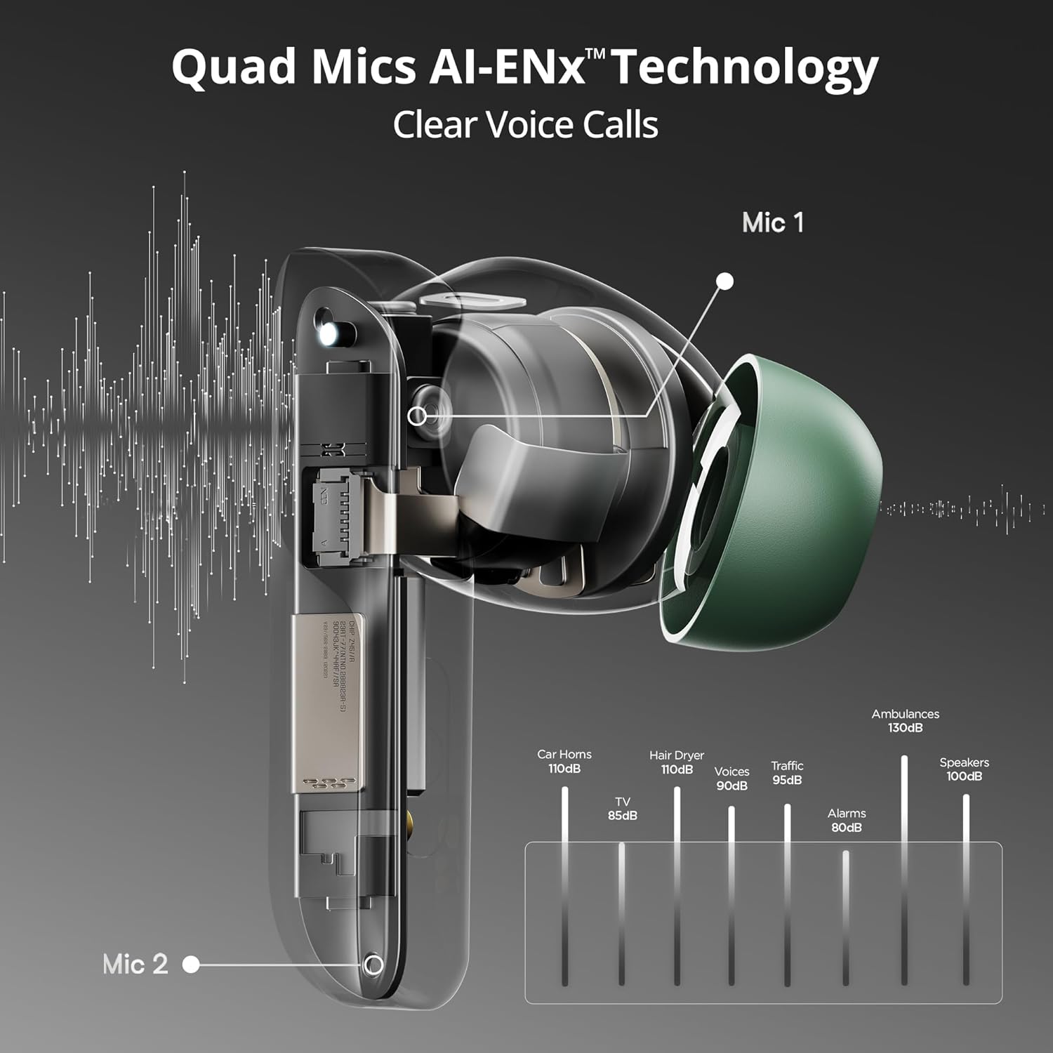 4 Mics with AI-ENx: Attend calls on the go while sporting these earbuds, no matter where you are. Featuring noise cancelation driven by Artificial Intelligence, the four mics get rid of the surrounding noise effectively even if you are at the mall, airport, busy streets, or a crowded workspace, for clear two-way communication.