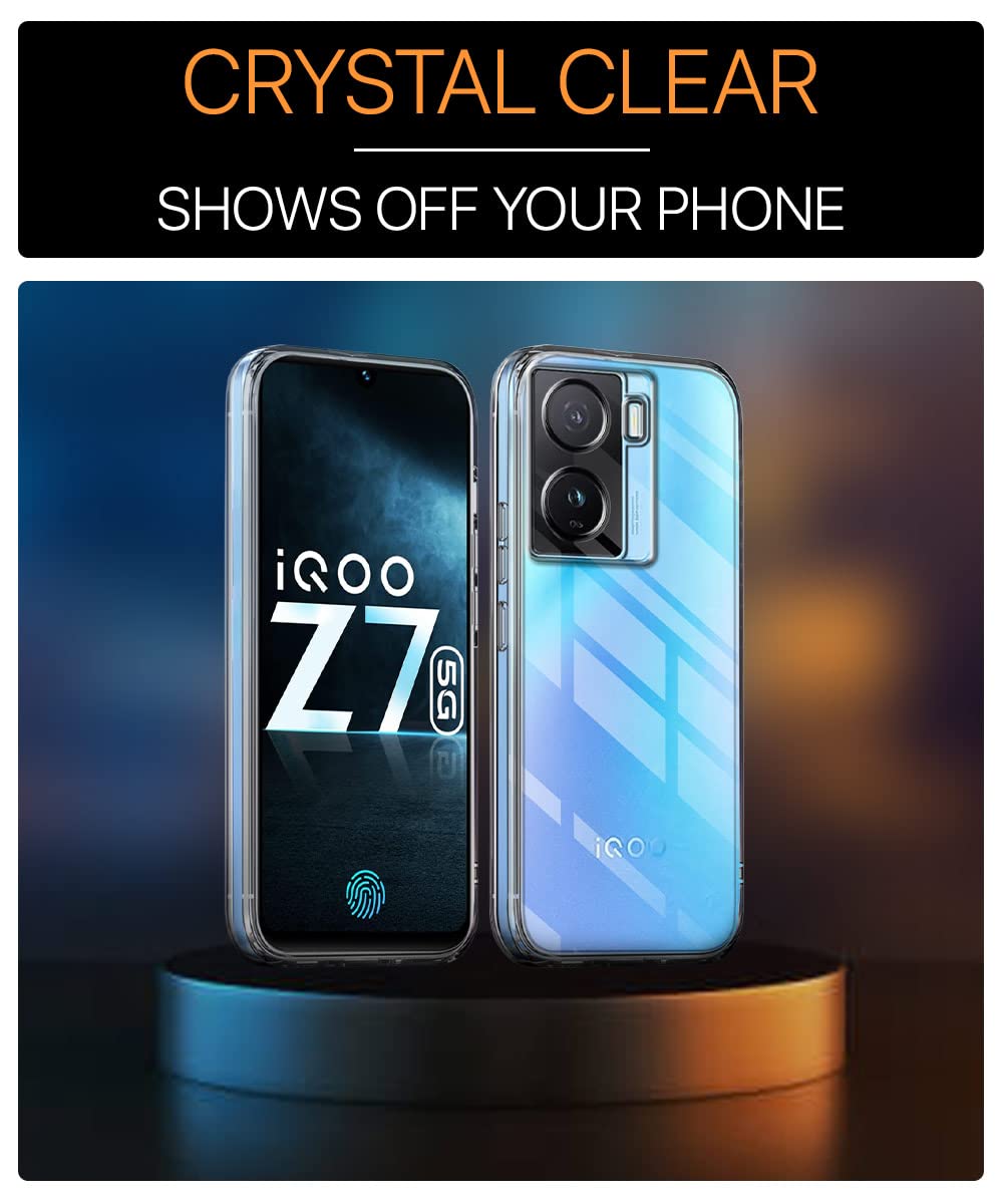 Crystal Clear Transparent Back Case Cover for iQOO Z7 5G | iQOO Z7s 5G | Full Device & Camera Protection Shockproof TPU Silicone Back Cover Case Transparent