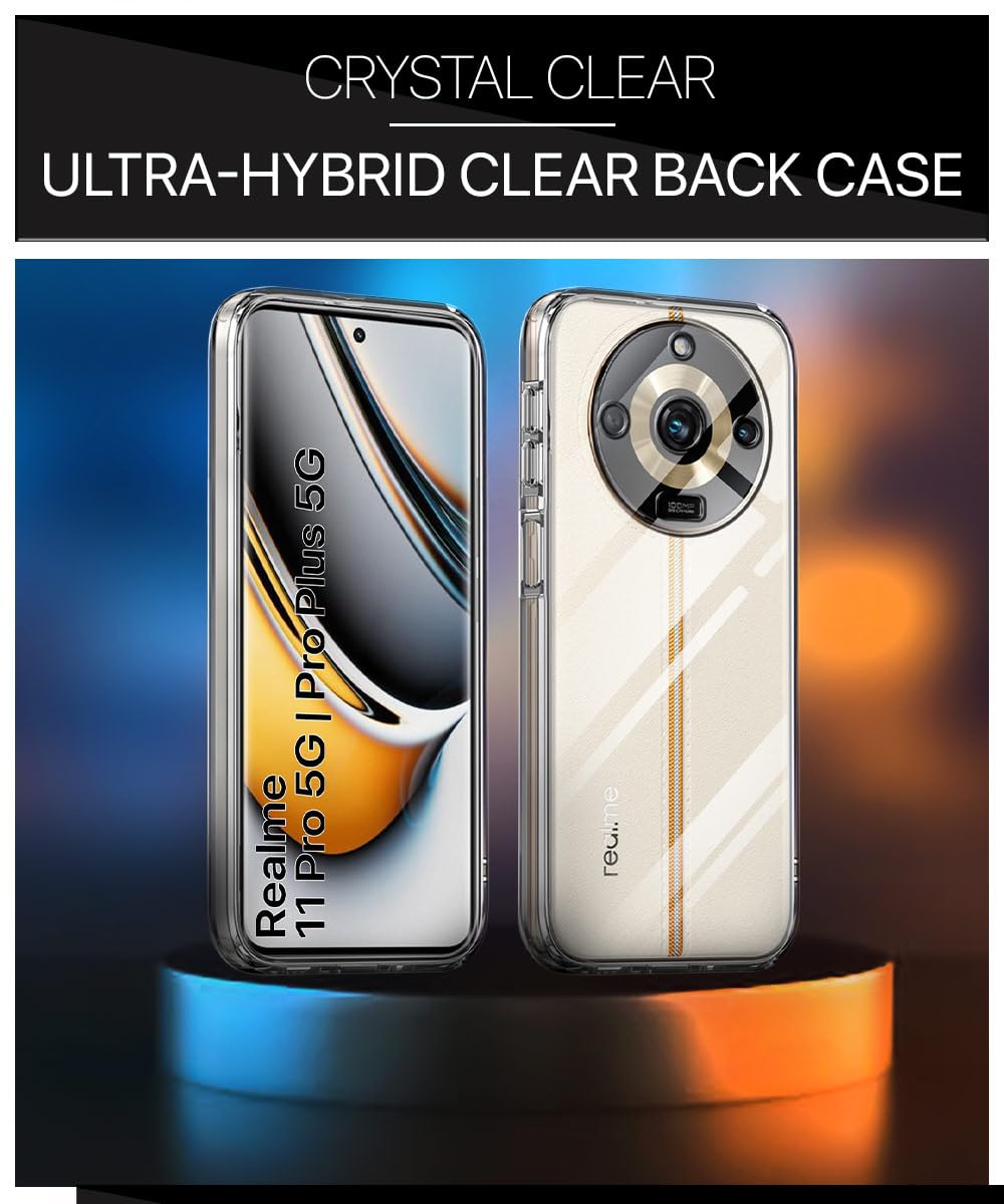 The Crystal Clear Transparent Back Case Cover for Realme Narzo 60 PRO | 11 PRO | 11 PRO Plus 5G | Full Device & Camera Protection Shockproof TPU Silicone Back Cover Case ? Transparent is designed with premium quality materials to provide superior protection, durability, and style for your smartphone. It offers a perfect balance between functionality and aesthetics, ensuring your device stays safe from scratches, impacts, and daily wear. Engineered with precision, it features accurate cutouts for ports, buttons, and cameras, making it highly convenient for everyday use. The slim and lightweight design ensures that your device retains its sleek profile without adding unnecessary bulk. Whether it is a nano film tempered glass, a hybrid back case, or a camera lens protector, each product is created with attention to detail to enhance the user experience and extend the life of your smartphone. The material used ensures long-lasting clarity, anti-scratch performance, and resistance against fingerprints and smudges. It is the ideal choice for users who want both style and substance in their smartphone accessories. This product from reflects innovation and craftsmanship, making it a reliable accessory that safeguards your investment while maintaining modern appeal.