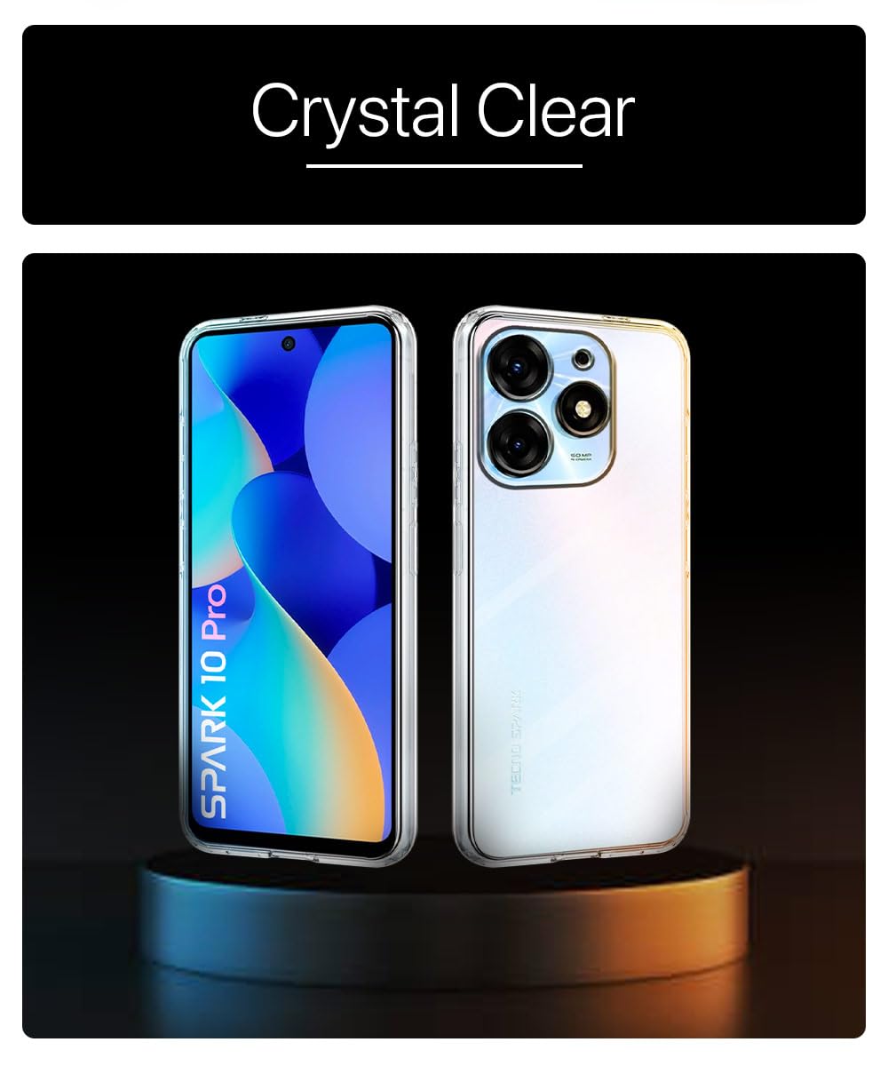 Crystal Clear Transparent Back Case Cover for Tecno Spark 10 Pro 5G | Full Device & Camera Protection Shockproof TPU | Flexible Silicone Back Cover Case Transparent