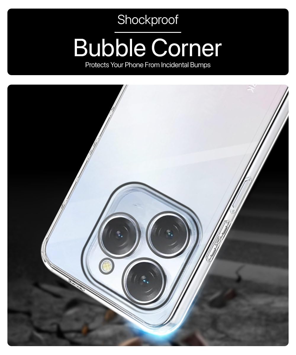 The Crystal Clear Transparent Back Case Cover for Tecno Spark 20 Pro | Full Device & Camera Protection Shockproof TPU | Flexible Silicone Back Cover Case ? Transparent is designed with premium quality materials to provide superior protection, durability, and style for your smartphone. It offers a perfect balance between functionality and aesthetics, ensuring your device stays safe from scratches, impacts, and daily wear. Engineered with precision, it features accurate cutouts for ports, buttons, and cameras, making it highly convenient for everyday use. The slim and lightweight design ensures that your device retains its sleek profile without adding unnecessary bulk. Whether it is a nano film tempered glass, a hybrid back case, or a camera lens protector, each product is created with attention to detail to enhance the user experience and extend the life of your smartphone. The material used ensures long-lasting clarity, anti-scratch performance, and resistance against fingerprints and smudges. It is the ideal choice for users who want both style and substance in their smartphone accessories. This product from reflects innovation and craftsmanship, making it a reliable accessory that safeguards your investment while maintaining modern appeal.