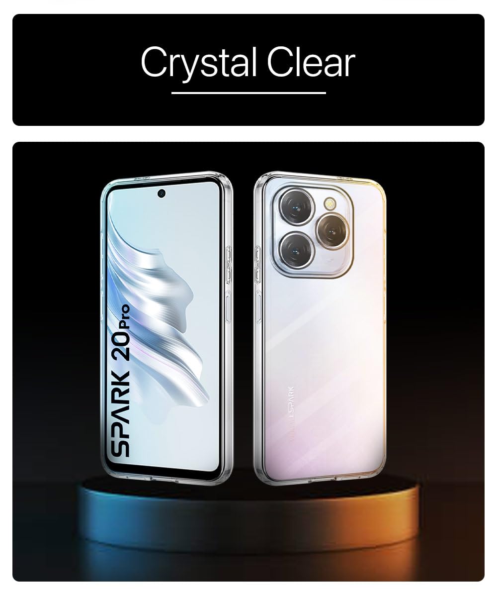 Crystal Clear Transparent Back Case Cover for Tecno Spark 20 Pro | Full Device & Camera Protection Shockproof TPU | Flexible Silicone Back Cover Case Transparent