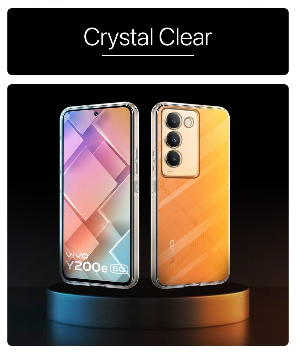 The Crystal Clear Transparent Back Case Cover for Vivo Y200e 5G | Vivo T3 5G | Full Device & Camera Protection Shockproof TPU | Flexible Silicone Back Cover Case ? Transparent is designed with premium quality materials to provide superior protection, durability, and style for your smartphone. It offers a perfect balance between functionality and aesthetics, ensuring your device stays safe from scratches, impacts, and daily wear. Engineered with precision, it features accurate cutouts for ports, buttons, and cameras, making it highly convenient for everyday use. The slim and lightweight design ensures that your device retains its sleek profile without adding unnecessary bulk. Whether it is a nano film tempered glass, a hybrid back case, or a camera lens protector, each product is created with attention to detail to enhance the user experience and extend the life of your smartphone. The material used ensures long-lasting clarity, anti-scratch performance, and resistance against fingerprints and smudges. It is the ideal choice for users who want both style and substance in their smartphone accessories. This product from reflects innovation and craftsmanship, making it a reliable accessory that safeguards your investment while maintaining modern appeal.