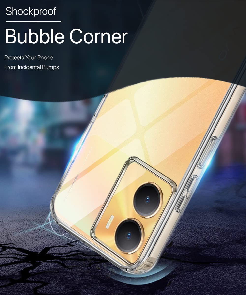 Crystal Clear Transparent Back Case Cover for Vivo Y56 5G | Vivo Y16 | Vivo T2X | Full Device & Camera Protection Shockproof TPU Silicone Back Cover Case Transparent