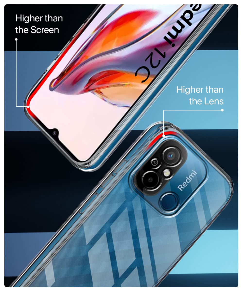 Crystal Clear Transparent Back Case Cover for Xiaomi Redmi 12C | Poco C55 | Full Device & Camera Protection Shockproof TPU | Flexible Silicone Back Cover Case Transparent