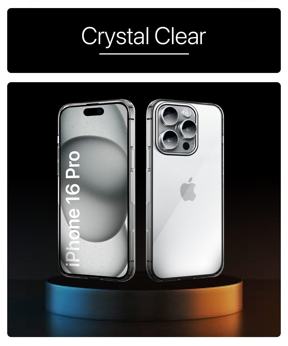 Crystal Clear Transparent Back Cover Case Compatible with iPhone 16 Pro Shockproof Flexible TPU Silicone Case with Full Body & Camera Protection Transparent