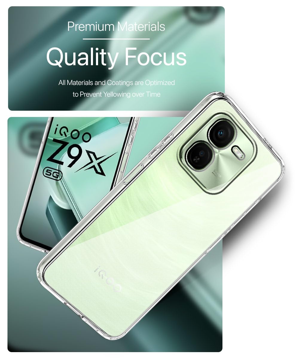 Crystal Clear Transparent Back Cover Case Compatible with iQOO Z9x 5G Shockproof Flexible TPU Silicone Case with Full Body & Camera Protection Transparent