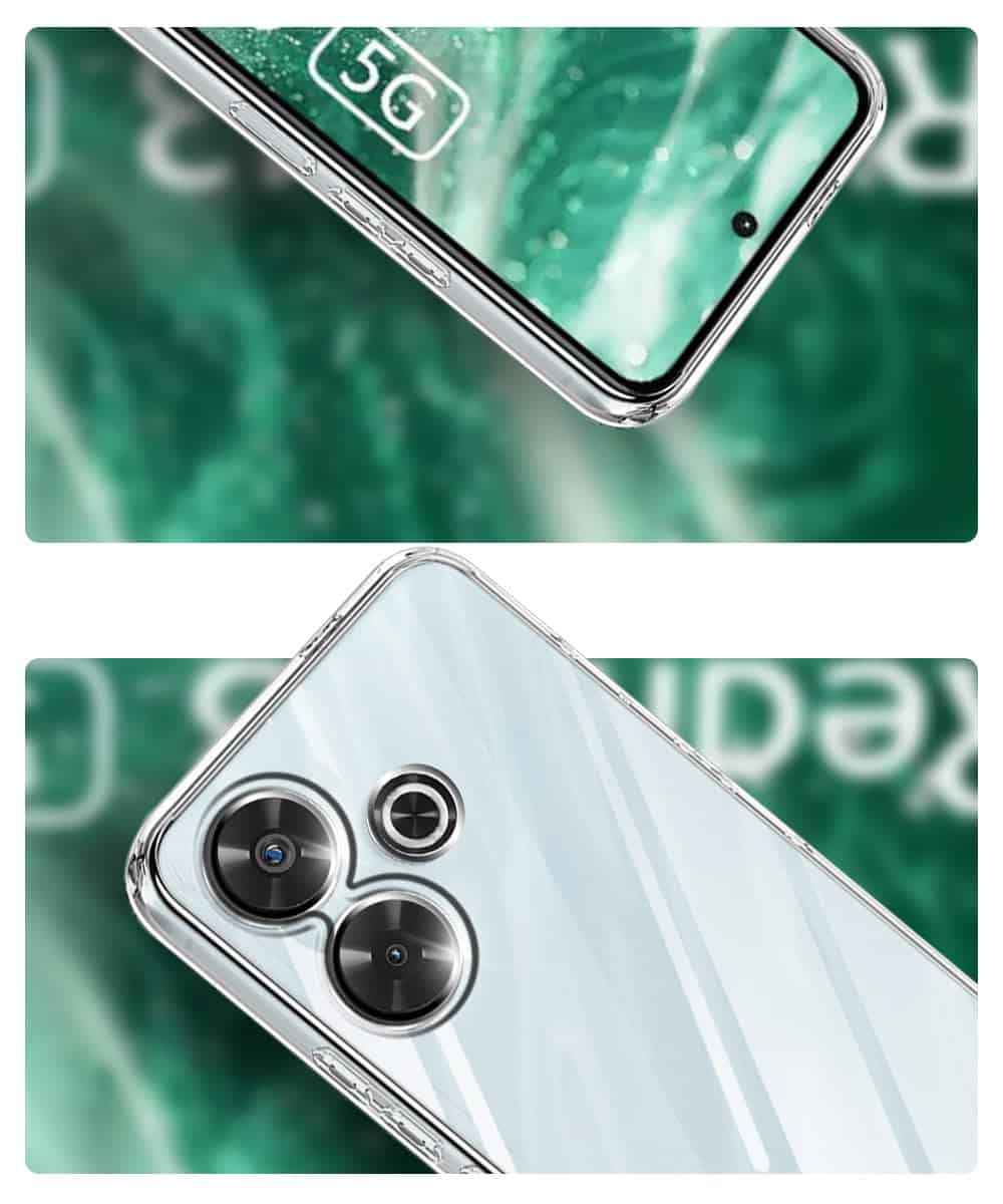 Crystal Clear Transparent Back Cover Case Compatible with Mi Redmi 13 5G & Poco M6 Plus 5G Shockproof Flexible TPU Silicone Case with Full Body & Camera Protection Transparent