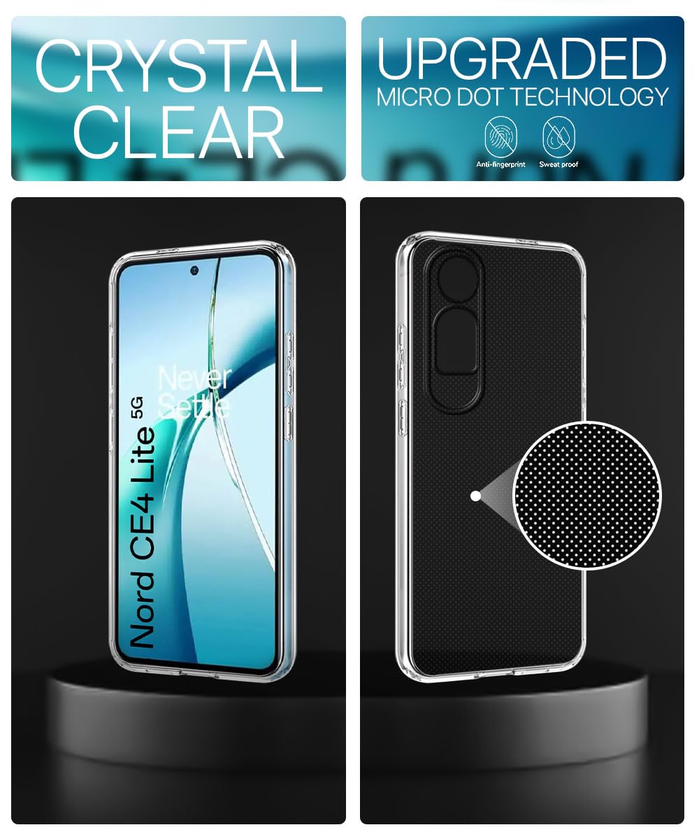 Crystal Clear Transparent Back Cover Case Compatible with OnePlus Nord CE 4 Lite 5G Shockproof Flexible TPU Silicone Case with Full Body & Camera Protection Transparent