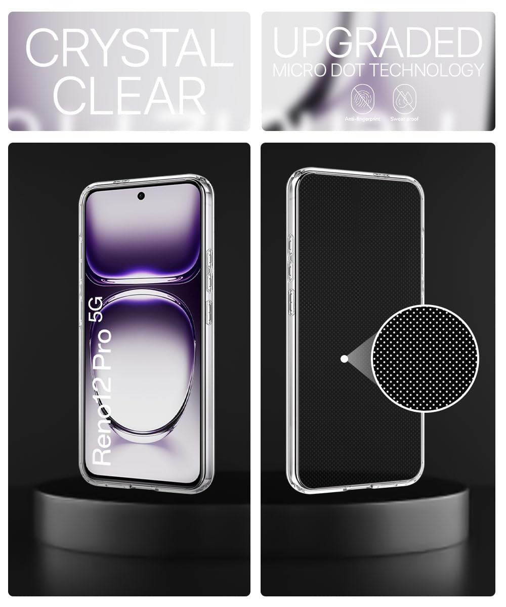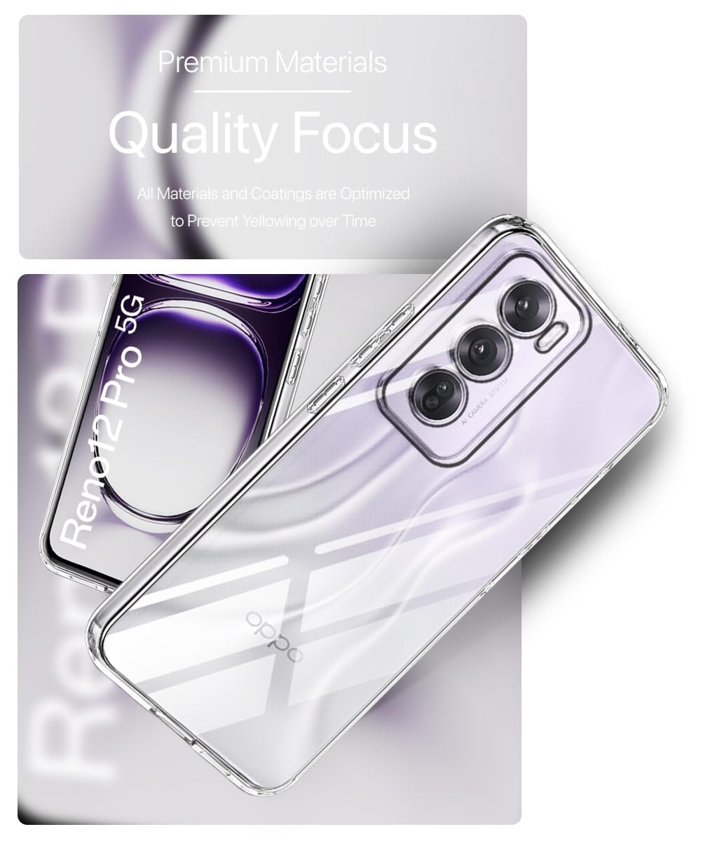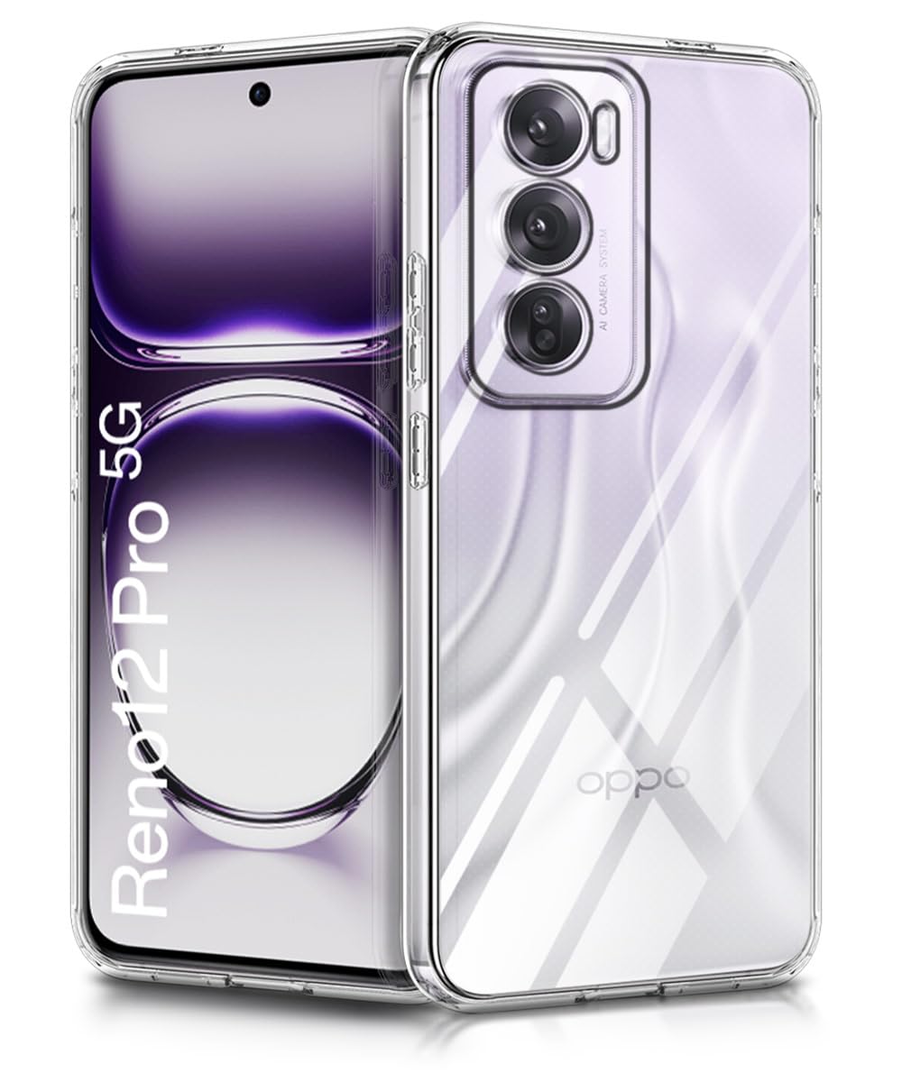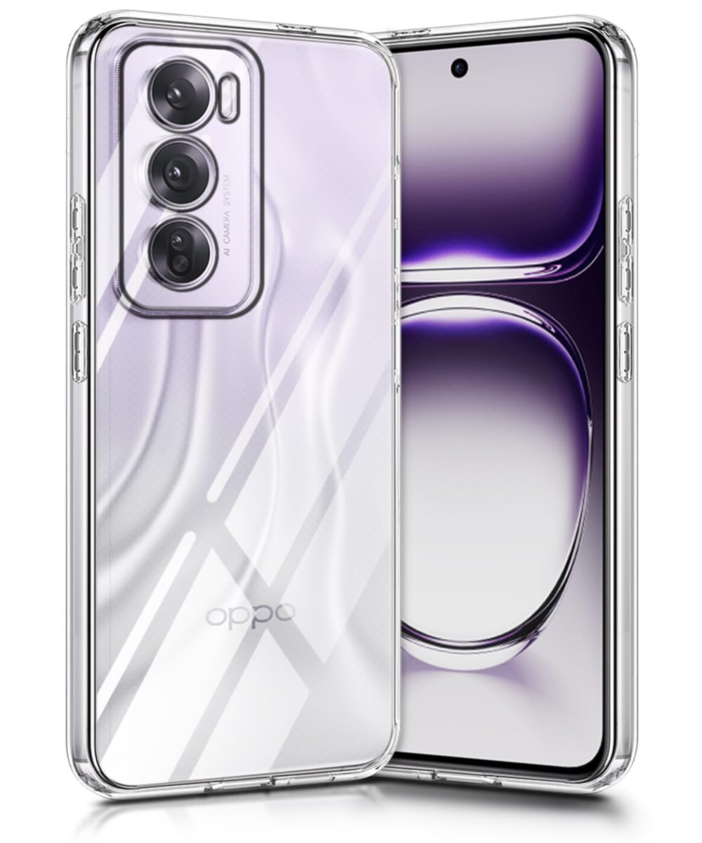 Crystal Clear Transparent Back Cover Case Compatible with Oppo Reno 12 Pro 5G Shockproof Flexible TPU Silicone Case with Full Body & Camera Protection Transparent