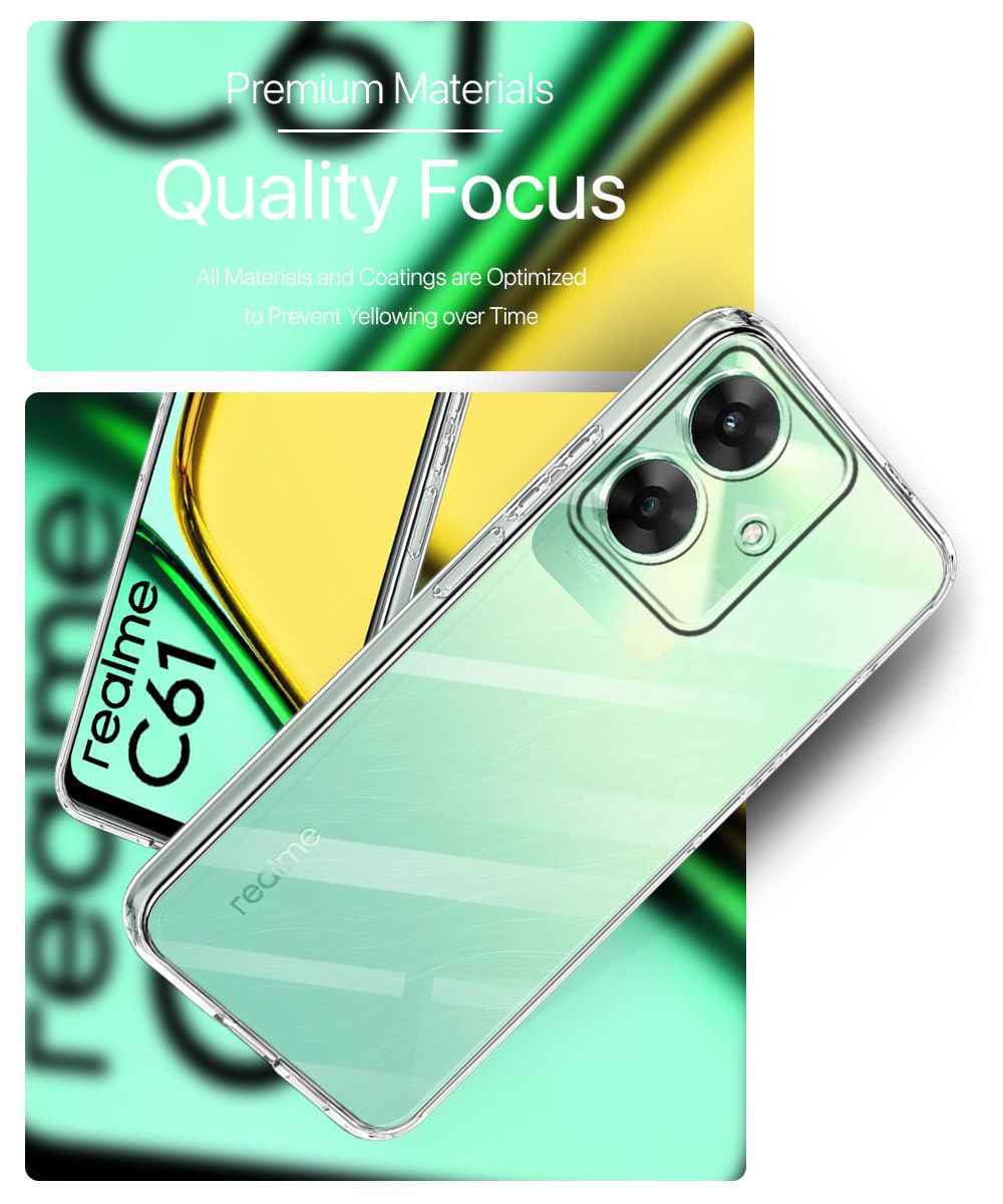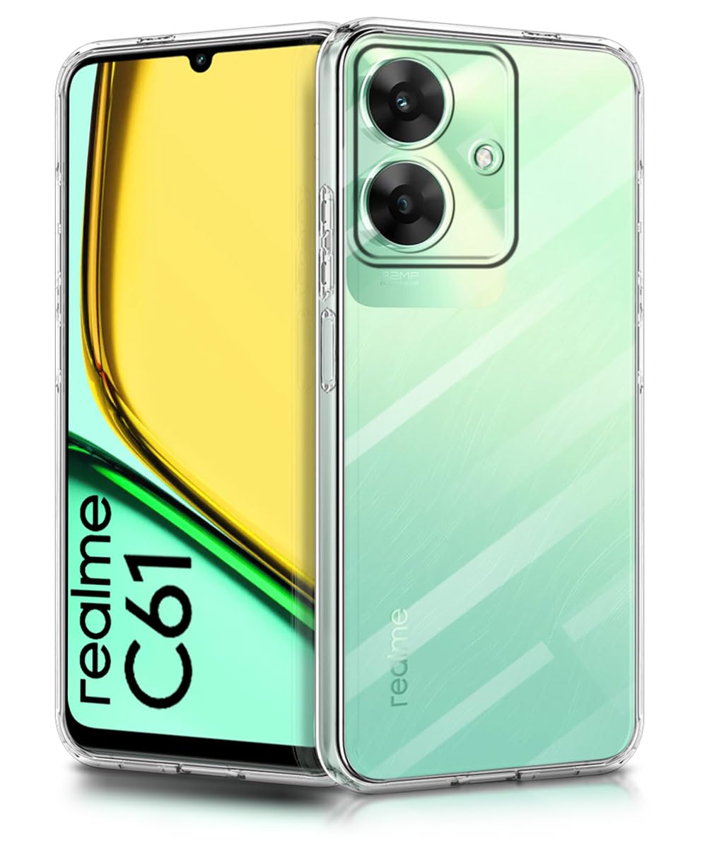 Crystal Clear Transparent Back Cover Case Compatible with Realme Narzo N61 & Realme C61 Shockproof Flexible TPU Silicone Case with Full Body & Camera Protection Transparent