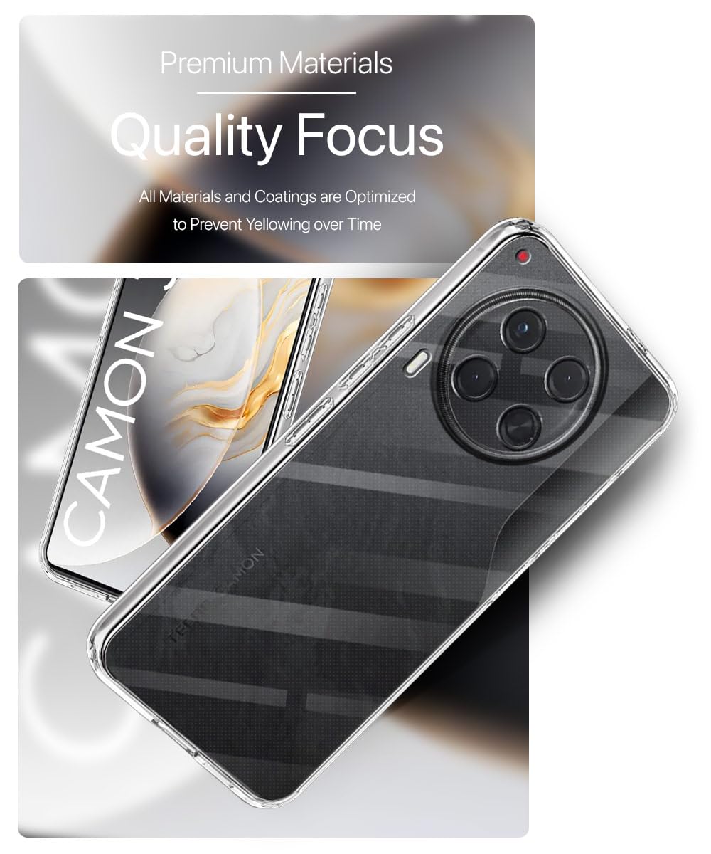 Crystal Clear Transparent Back Cover Case Compatible with Tecno Camon 30 5G Shockproof Flexible TPU Silicone Case with Full Body & Camera Protection Transparent