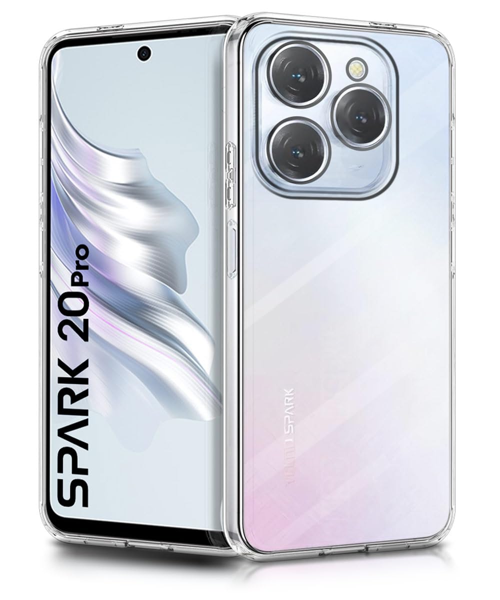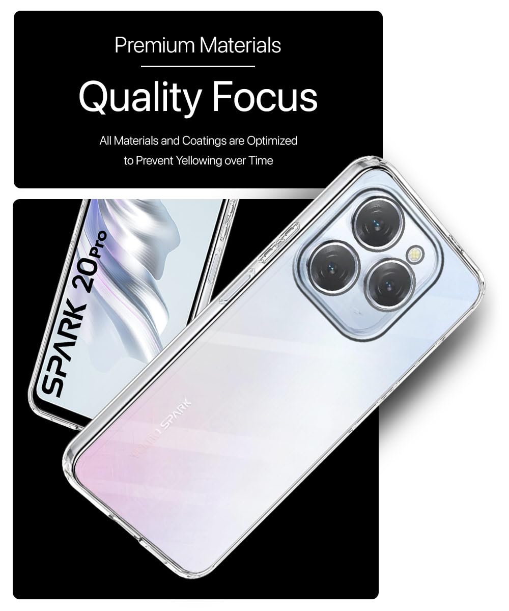Crystal Clear Transparent Back Cover Case Compatible with Tecno Spark 20 Pro Shockproof Flexible TPU Silicone Case with Full Body & Camera Protection Transparent
