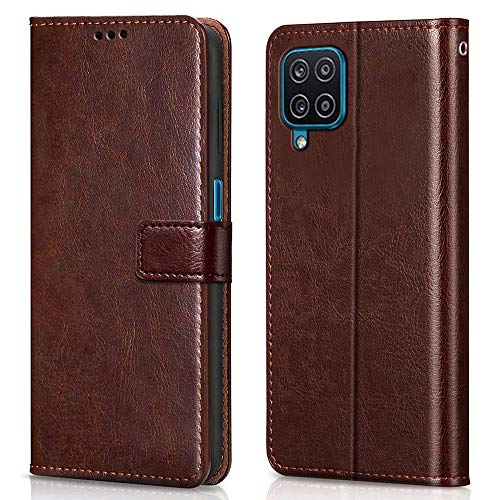 Buy premium shock proof flip cover back case for samsung galaxy a12. Leather finish with magnetic flip closure, wallet pockets and stand support. Durable protection against drops and scratches with a perfect fit for samsung galaxy a12.