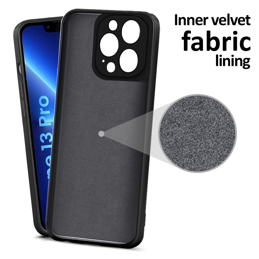 kelpuj Back Cover for Apple iPhone 13 Pro | Ultra Slim Soft Rubberised Case | Inner Velvet Fabric Lining | Matte Silicone Flexible Mobile Case | Camera Protection – Black
