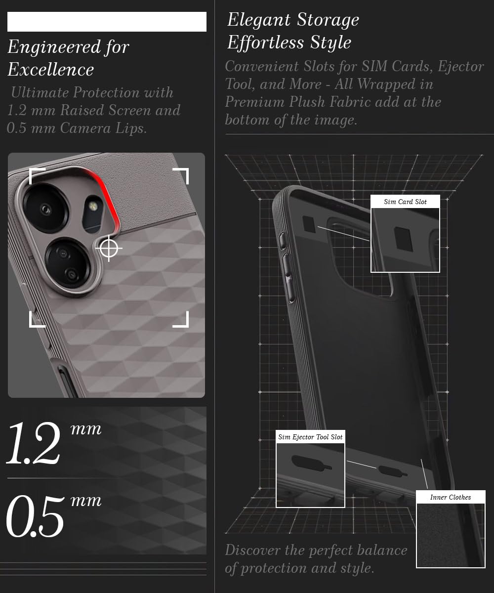 Back Cover for Mi Redmi 13C 5G | Redmi 13C 4G | Poco M6 5G | Poco C65 | Hexa Cube Design | Inner Velvet Fabric Soft Case | Matte Silicone Flexible Mobile Case | Camera Protection – Grey is designed with premium quality materials to provide superior protection, durability, and style for your smartphone. It offers a perfect balance between functionality and aesthetics, ensuring your device stays safe from scratches, impacts, and daily wear. Engineered with precision, it features accurate cutouts for ports, buttons, and cameras, making it highly convenient for everyday use. The slim and lightweight design ensures that your device retains its sleek profile without adding unnecessary bulk. Whether it is a nano film tempered glass, a hybrid back case, or a camera lens protector, each product is created with attention to detail to enhance the user experience and extend the life of your smartphone. The material used ensures long-lasting clarity, anti-scratch performance, and resistance against fingerprints and smudges. It is the ideal choice for users who want both style and substance in their smartphone accessories. This product from KELPUJ reflects innovation and craftsmanship, making it a reliable accessory that safeguards your investment while maintaining modern appeal.