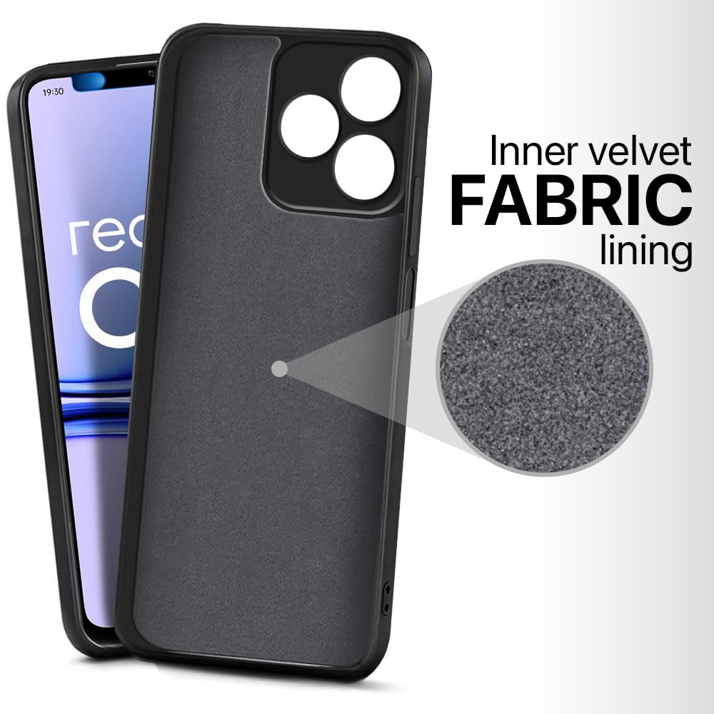 kelpuj Back Cover for Realme Narzo N53 | Realme C53 | Realme C51 | Ultra Slim Soft Rubberised Case | Inner Velvet Fabric Lining | Matte Silicone Flexible Mobile Case | Camera Protection – Black