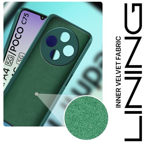 kelpuj Back Cover for Redmi A4 5G | Poco C75 5G | 14C 5G | Poco M7 | Ultra Slim Soft Rubberised Case | Inner Velvet Fabric Lining | Matte Silicone Flexible Mobile Case | Camera Protection – Green