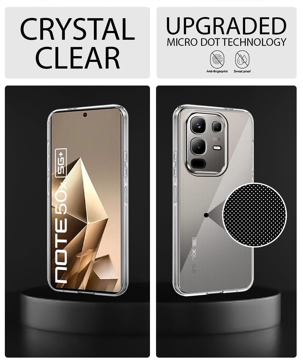 kelpuj Crystal Clear Transparent Back Case Cover for Infinix Note 50X 5G | Full Device & Camera Protection Shockproof TPU | Flexible Silicone Back Cover Case Transparent