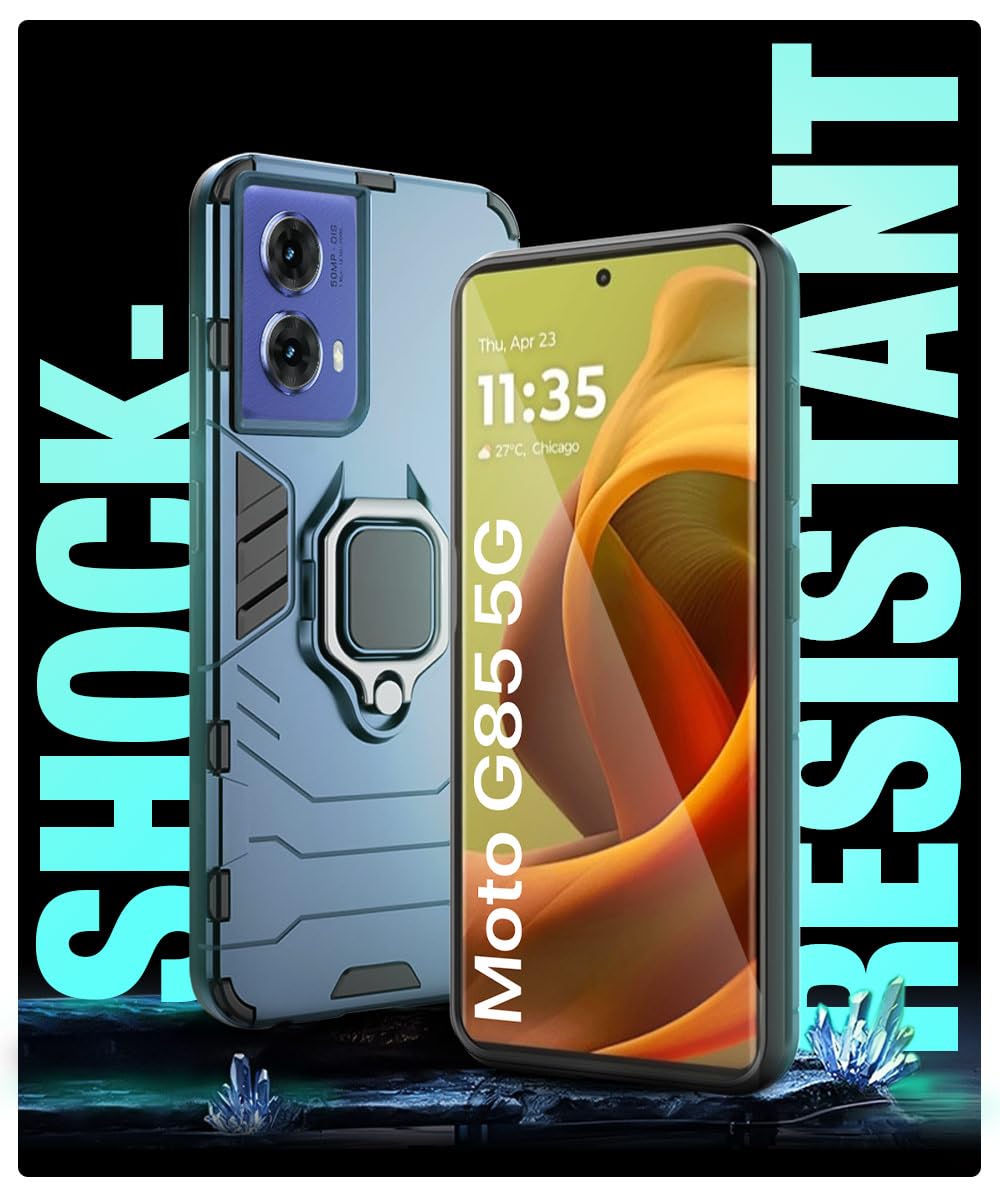 Shock Proof Back Case Mobile Cover for Motorola Moto G85 5G | Back Cover Case (Tough Armor | Hybrid PC + TPU | Ring Holder & in-Built Kickstand | Blue) is designed with premium quality materials to provide superior protection, durability, and style for your smartphone. It offers a perfect balance between functionality and aesthetics, ensuring your device stays safe from scratches, impacts, and daily wear. Engineered with precision, it features accurate cutouts for ports, buttons, and cameras, making it highly convenient for everyday use. The slim and lightweight design ensures that your device retains its sleek profile without adding unnecessary bulk. Whether it is a nano film tempered glass, a hybrid back case, or a camera lens protector, each product is created with attention to detail to enhance the user experience and extend the life of your smartphone. The material used ensures long-lasting clarity, anti-scratch performance, and resistance against fingerprints and smudges. It is the ideal choice for users who want both style and substance in their smartphone accessories. This product from KELPUJ reflects innovation and craftsmanship, making it a reliable accessory that safeguards your investment while maintaining modern appeal.