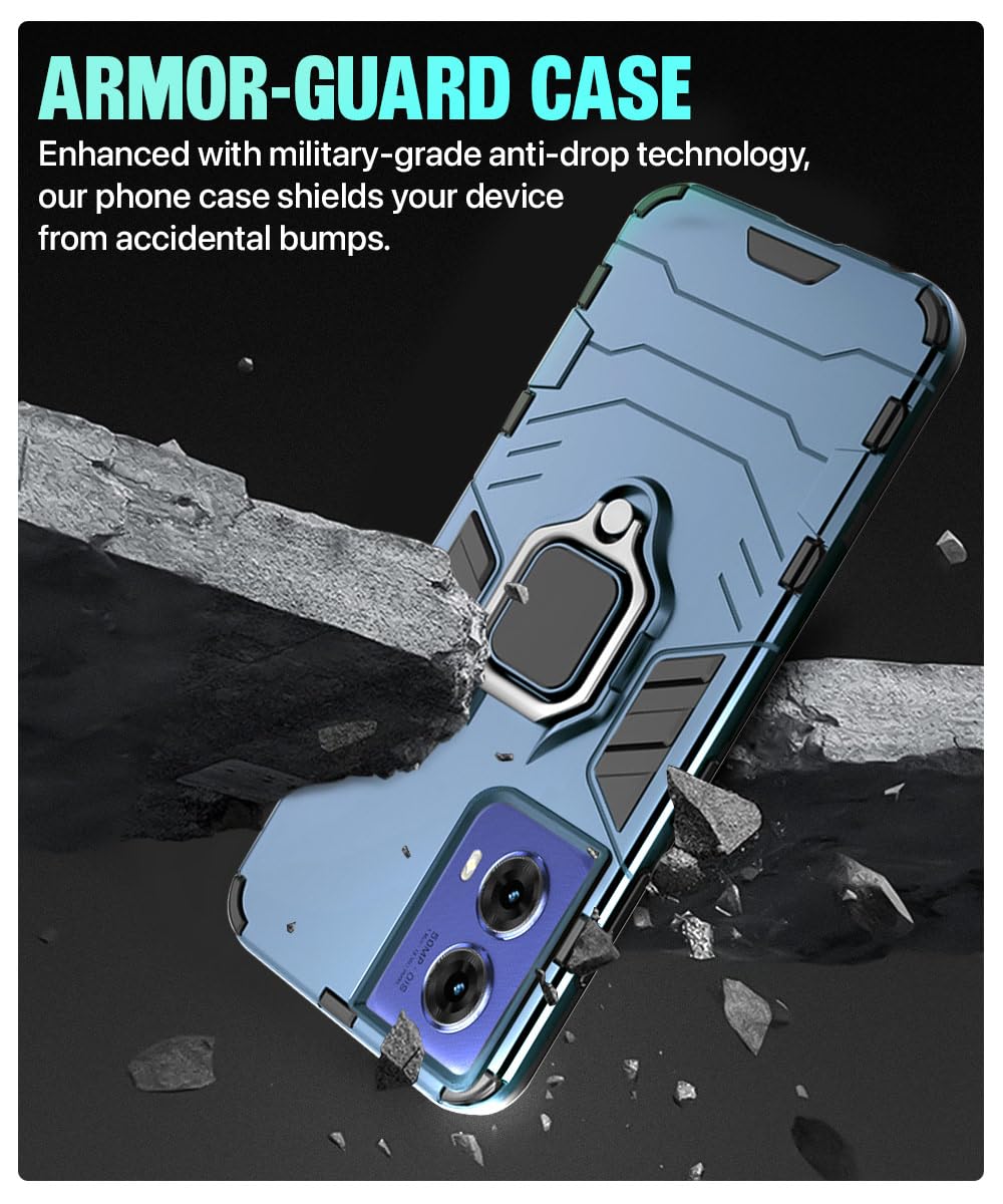 kelpuj Shock Proof Back Case Mobile Cover for Motorola Moto G85 5G | Back Cover Case (Tough Armor | Hybrid PC + TPU | Ring Holder & in-Built Kickstand | Blue)