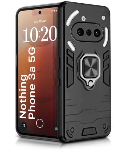 kelpuj Shock Proof Back Case Mobile Cover for Nothing Phone 3a 5G | Back Cover Case (Tough Armor | Hybrid PC + TPU | Ring Holder & in-Built Kickstand | Black)