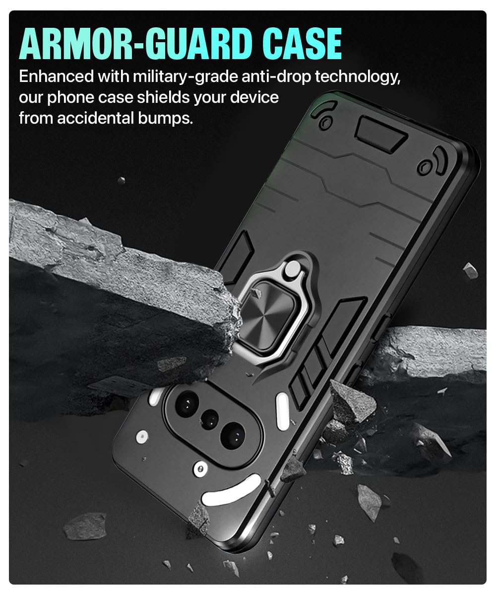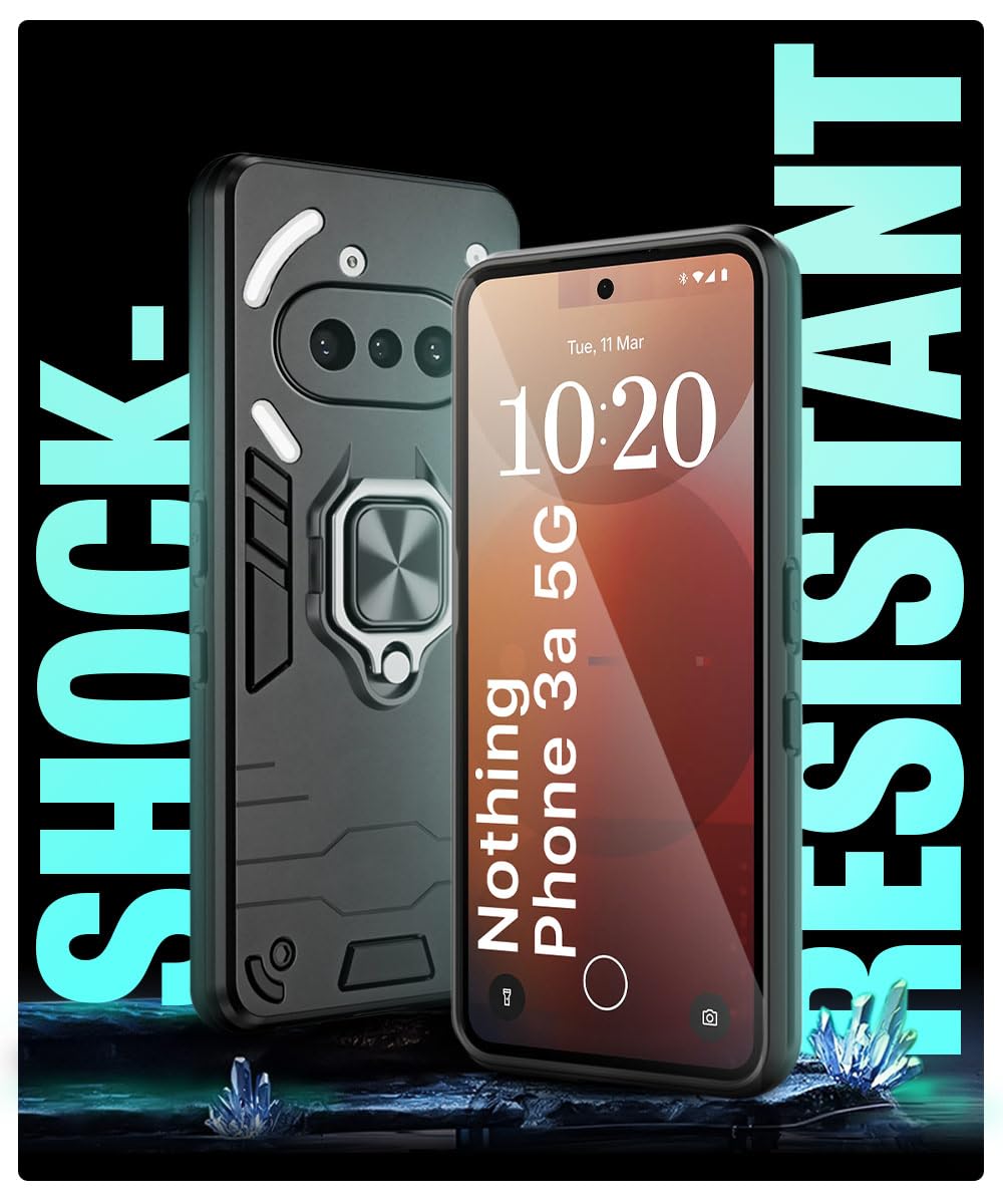 Shock Proof Back Case Mobile Cover for Nothing Phone 3a 5G | Back Cover Case (Tough Armor | Hybrid PC + TPU | Ring Holder & in-Built Kickstand | Black) is designed with premium quality materials to provide superior protection, durability, and style for your smartphone. It offers a perfect balance between functionality and aesthetics, ensuring your device stays safe from scratches, impacts, and daily wear. Engineered with precision, it features accurate cutouts for ports, buttons, and cameras, making it highly convenient for everyday use. The slim and lightweight design ensures that your device retains its sleek profile without adding unnecessary bulk. Whether it is a nano film tempered glass, a hybrid back case, or a camera lens protector, each product is created with attention to detail to enhance the user experience and extend the life of your smartphone. The material used ensures long-lasting clarity, anti-scratch performance, and resistance against fingerprints and smudges. It is the ideal choice for users who want both style and substance in their smartphone accessories. This product from KELPUJ reflects innovation and craftsmanship, making it a reliable accessory that safeguards your investment while maintaining modern appeal.