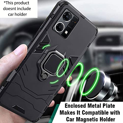 kelpuj Shock Proof Back Case Mobile Cover for Oppo F21 Pro 4G | Back Cover Case (Tough Armor | Hybrid PC + TPU | Ring Holder & in-Built Kickstand | Black)
