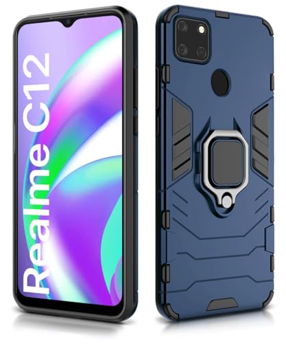 kelpuj Shock Proof Back Case Mobile Cover for Realme Narzo 30A | 20 | C12 | Back Cover Case (Tough Armor | Hybrid PC + TPU | Ring Holder & in-Built Kickstand | Blue)