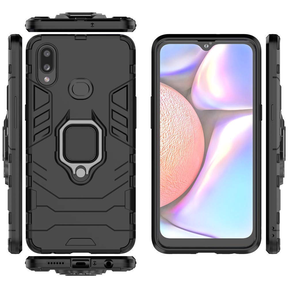 kelpuj Shock Proof Back Case Mobile Cover for Samsung Galaxy A10s | Galaxy M01s (Armor | Hybrid PC + TPU | Full Protection with Ring Holder Kickstand | Carbon Black)
