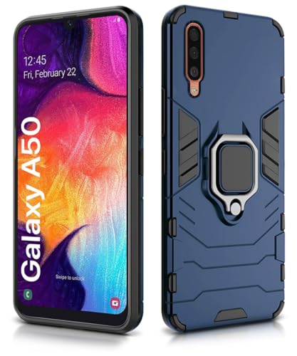 kelpuj Shock Proof Back Case Mobile Cover for Samsung Galaxy A50 | A50s | A30s | Back Cover Case (Tough Armor | Hybrid PC + TPU | Ring Holder & in-Built Kickstand | Blue)