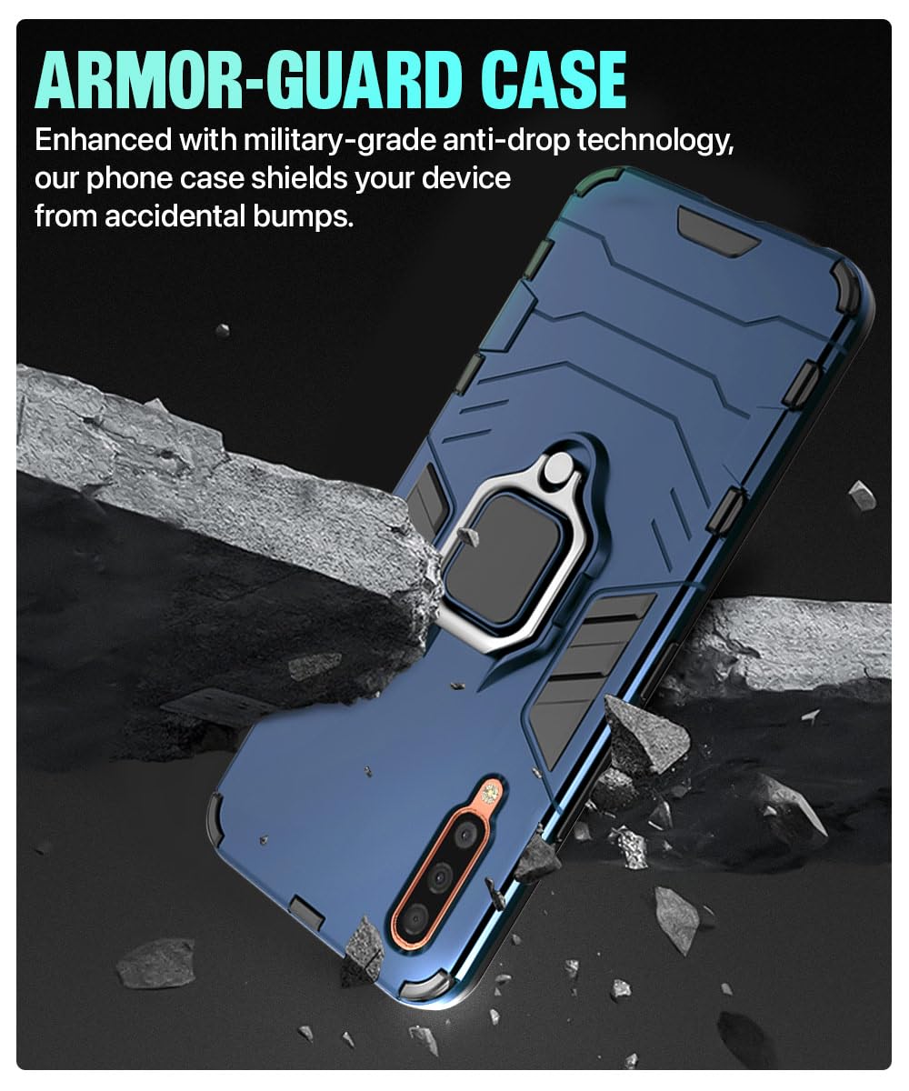 Shock Proof Back Case Mobile Cover for Samsung Galaxy A50 | A50s | A30s | Back Cover Case (Tough Armor | Hybrid PC + TPU | Ring Holder & in-Built Kickstand | Blue) is designed with premium quality materials to provide superior protection, durability, and style for your smartphone. It offers a perfect balance between functionality and aesthetics, ensuring your device stays safe from scratches, impacts, and daily wear. Engineered with precision, it features accurate cutouts for ports, buttons, and cameras, making it highly convenient for everyday use. The slim and lightweight design ensures that your device retains its sleek profile without adding unnecessary bulk. Whether it is a nano film tempered glass, a hybrid back case, or a camera lens protector, each product is created with attention to detail to enhance the user experience and extend the life of your smartphone. The material used ensures long-lasting clarity, anti-scratch performance, and resistance against fingerprints and smudges. It is the ideal choice for users who want both style and substance in their smartphone accessories. This product from KELPUJ reflects innovation and craftsmanship, making it a reliable accessory that safeguards your investment while maintaining modern appeal.