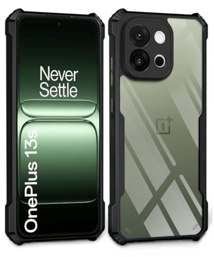 kelpuj Shock Proof Clear Protective Back Case for 1+ OnePlus 13s 5G – AirEDGE Technology | 360 Degree Camera Protection | Transparent Hybrid Back Case Mobile Cover – Black
