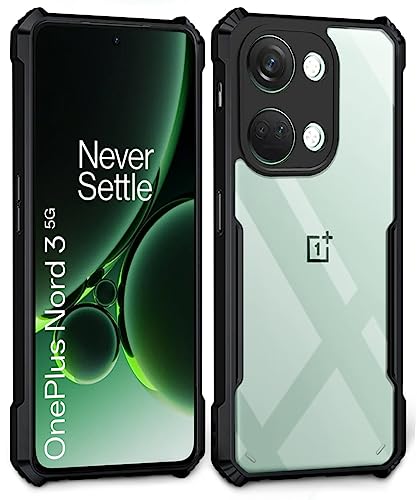 kelpuj Shock Proof Clear Protective Back Case for 1+ OnePlus Nord 3 5G – AirEDGE Technology | 360 Degree Camera Protection | Transparent Hybrid Back Case Mobile Cover – Black