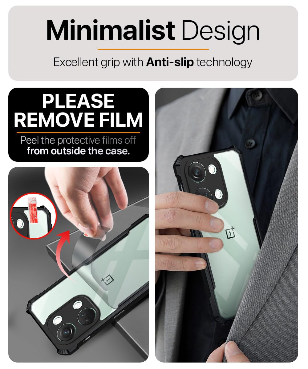 Shock Proof Clear Protective Back Case for 1+ OnePlus Nord 3 5G – AirEDGE Technology | 360 Degree Camera Protection | Transparent Hybrid Back Case Mobile Cover – Black is designed with premium quality materials to provide superior protection, durability, and style for your smartphone. It offers a perfect balance between functionality and aesthetics, ensuring your device stays safe from scratches, impacts, and daily wear. Engineered with precision, it features accurate cutouts for ports, buttons, and cameras, making it highly convenient for everyday use. The slim and lightweight design ensures that your device retains its sleek profile without adding unnecessary bulk. Whether it is a nano film tempered glass, a hybrid back case, or a camera lens protector, each product is created with attention to detail to enhance the user experience and extend the life of your smartphone. The material used ensures long-lasting clarity, anti-scratch performance, and resistance against fingerprints and smudges. It is the ideal choice for users who want both style and substance in their smartphone accessories. This product from KELPUJ reflects innovation and craftsmanship, making it a reliable accessory that safeguards your investment while maintaining modern appeal.