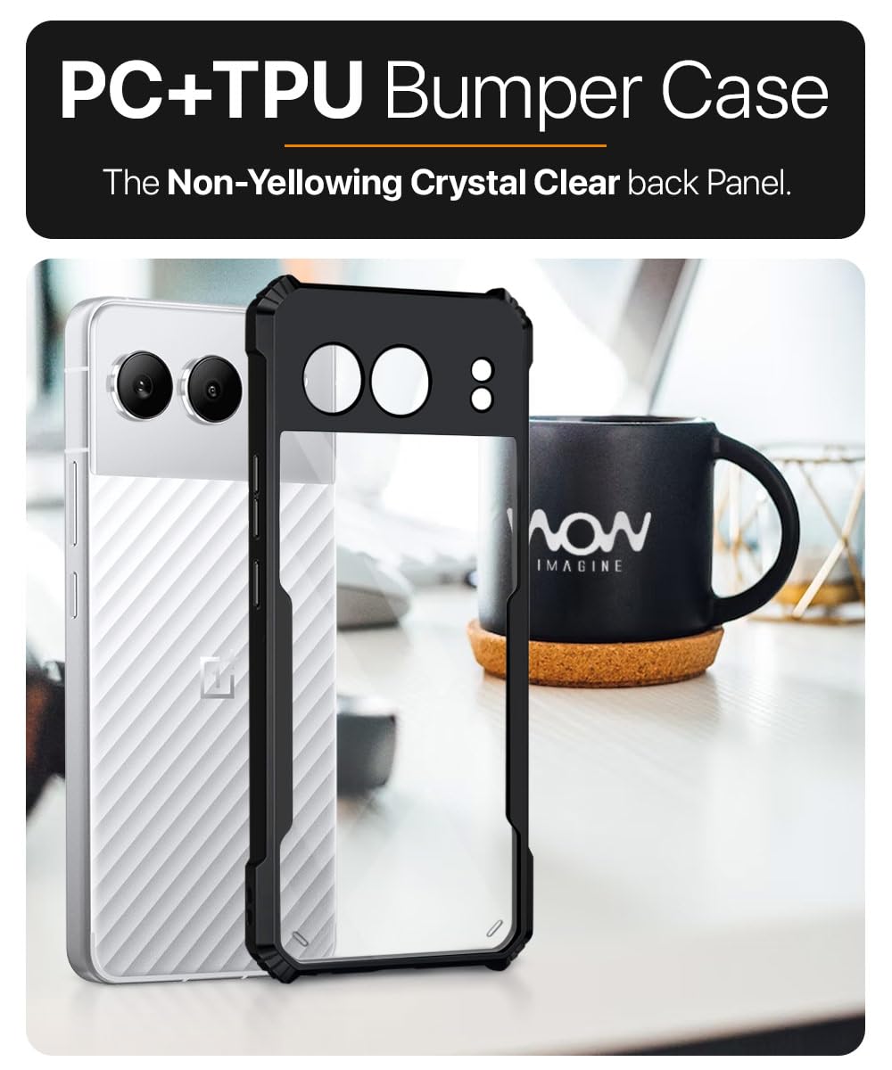 Shock Proof Clear Protective Back Case for 1+ OnePlus Nord 4 5G – AirEDGE Technology | 360 Degree Camera Protection | Transparent Hybrid Back Case Mobile Cover – Black is designed with premium quality materials to provide superior protection, durability, and style for your smartphone. It offers a perfect balance between functionality and aesthetics, ensuring your device stays safe from scratches, impacts, and daily wear. Engineered with precision, it features accurate cutouts for ports, buttons, and cameras, making it highly convenient for everyday use. The slim and lightweight design ensures that your device retains its sleek profile without adding unnecessary bulk. Whether it is a nano film tempered glass, a hybrid back case, or a camera lens protector, each product is created with attention to detail to enhance the user experience and extend the life of your smartphone. The material used ensures long-lasting clarity, anti-scratch performance, and resistance against fingerprints and smudges. It is the ideal choice for users who want both style and substance in their smartphone accessories. This product from KELPUJ reflects innovation and craftsmanship, making it a reliable accessory that safeguards your investment while maintaining modern appeal.