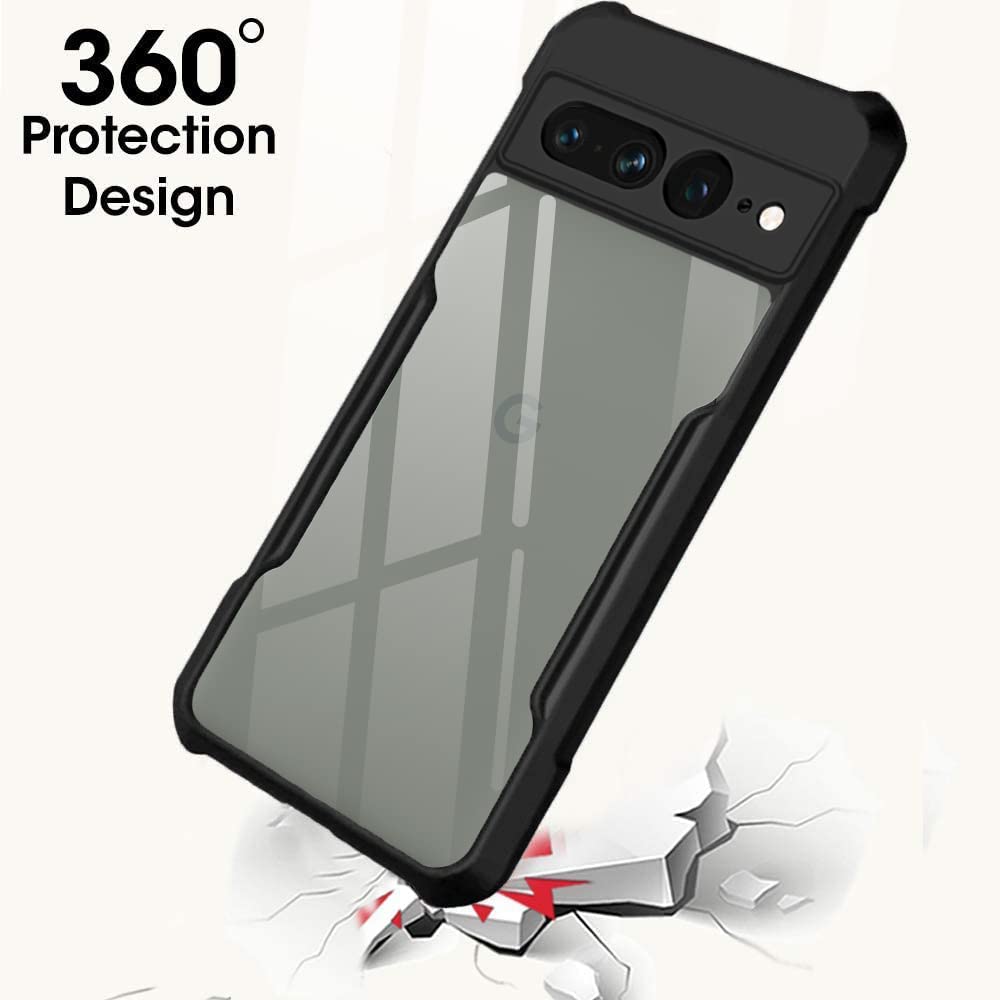 kelpuj Shock Proof Clear Protective Back Case for Google Pixel 7 Pro – AirEDGE Technology | 360 Degree Camera Protection | Transparent Hybrid Back Case Mobile Cover – Black