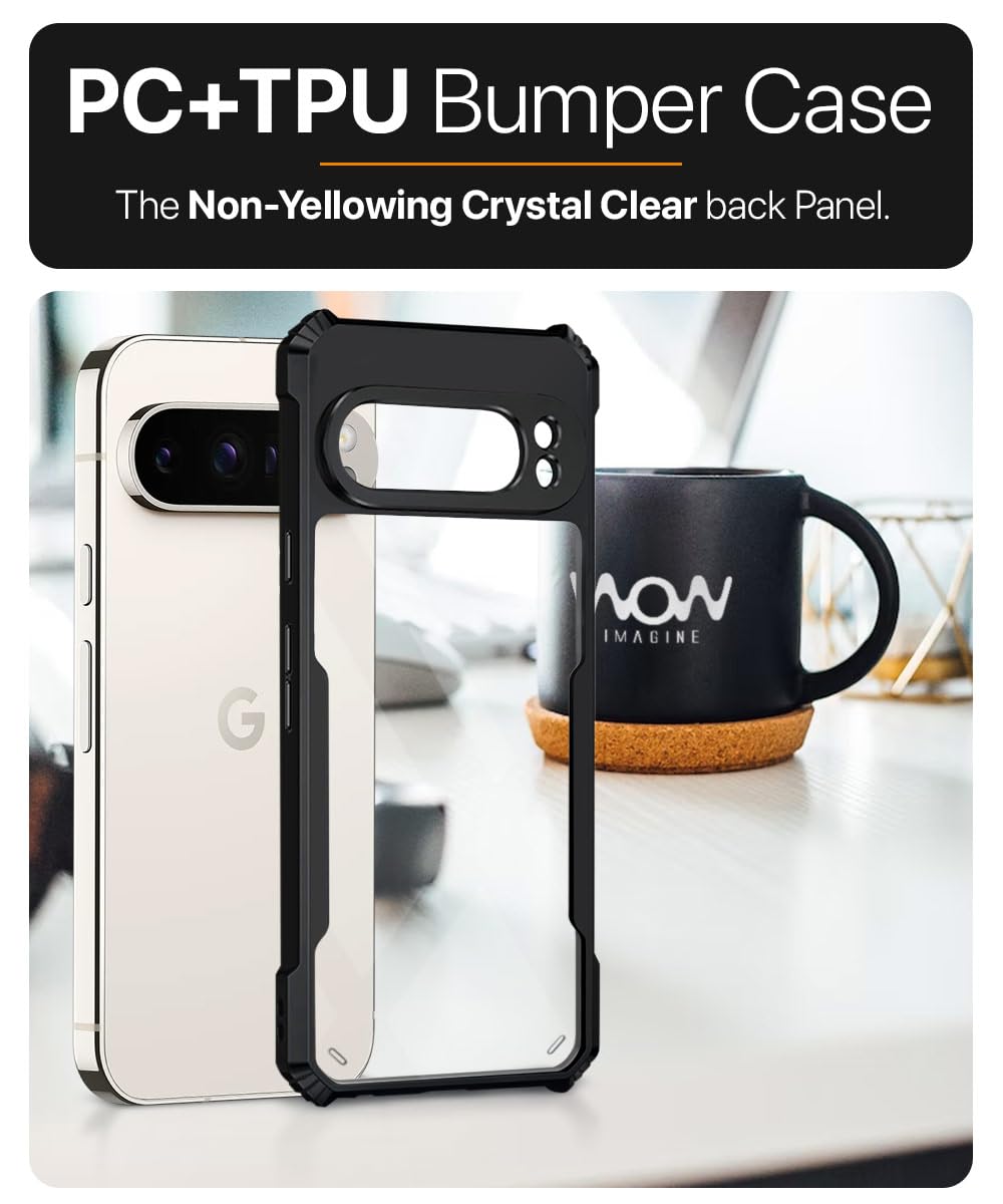 Shock Proof Clear Protective Back Case for Google Pixel 9 Pro – AirEDGE Technology | 360 Degree Camera Protection | Transparent Hybrid Back Case Mobile Cover – Black is designed with premium quality materials to provide superior protection, durability, and style for your smartphone. It offers a perfect balance between functionality and aesthetics, ensuring your device stays safe from scratches, impacts, and daily wear. Engineered with precision, it features accurate cutouts for ports, buttons, and cameras, making it highly convenient for everyday use. The slim and lightweight design ensures that your device retains its sleek profile without adding unnecessary bulk. Whether it is a nano film tempered glass, a hybrid back case, or a camera lens protector, each product is created with attention to detail to enhance the user experience and extend the life of your smartphone. The material used ensures long-lasting clarity, anti-scratch performance, and resistance against fingerprints and smudges. It is the ideal choice for users who want both style and substance in their smartphone accessories. This product from KELPUJ reflects innovation and craftsmanship, making it a reliable accessory that safeguards your investment while maintaining modern appeal.