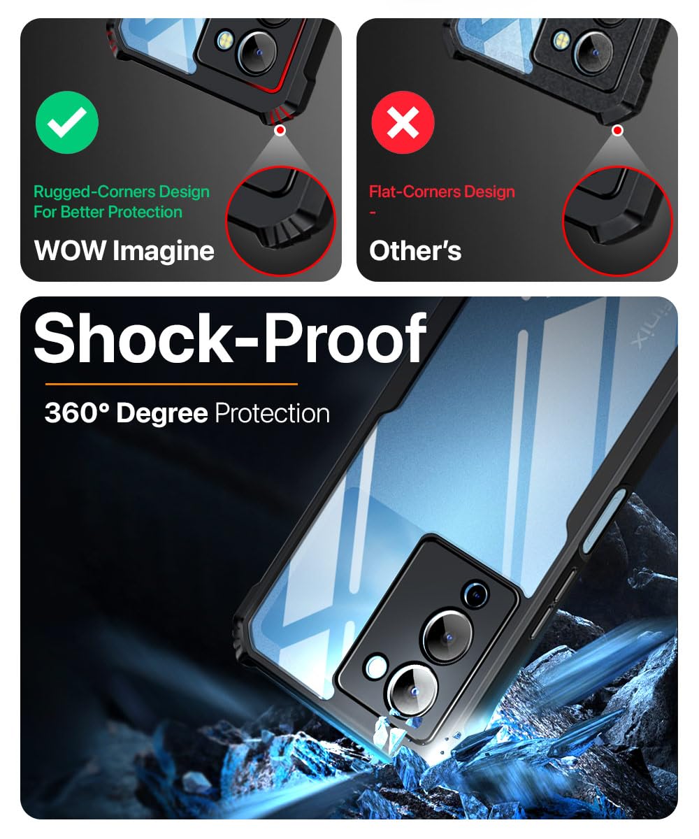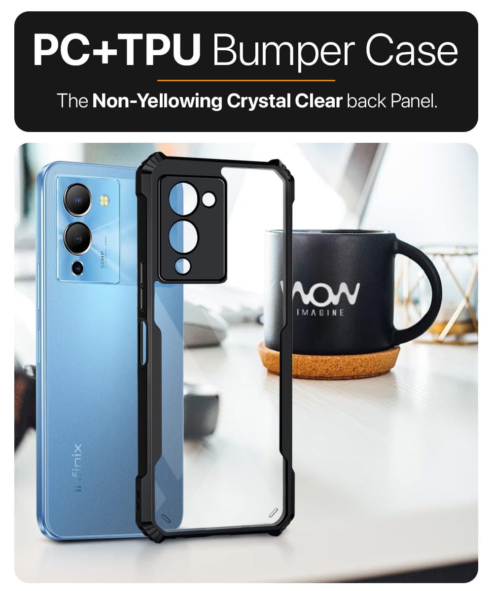 Shock Proof Clear Protective Back Case for Infinix Note 12 Turbo – AirEDGE Technology | 360 Degree Camera Protection | Transparent Hybrid Back Case Mobile Cover – Black is designed with premium quality materials to provide superior protection, durability, and style for your smartphone. It offers a perfect balance between functionality and aesthetics, ensuring your device stays safe from scratches, impacts, and daily wear. Engineered with precision, it features accurate cutouts for ports, buttons, and cameras, making it highly convenient for everyday use. The slim and lightweight design ensures that your device retains its sleek profile without adding unnecessary bulk. Whether it is a nano film tempered glass, a hybrid back case, or a camera lens protector, each product is created with attention to detail to enhance the user experience and extend the life of your smartphone. The material used ensures long-lasting clarity, anti-scratch performance, and resistance against fingerprints and smudges. It is the ideal choice for users who want both style and substance in their smartphone accessories. This product from KELPUJ reflects innovation and craftsmanship, making it a reliable accessory that safeguards your investment while maintaining modern appeal.