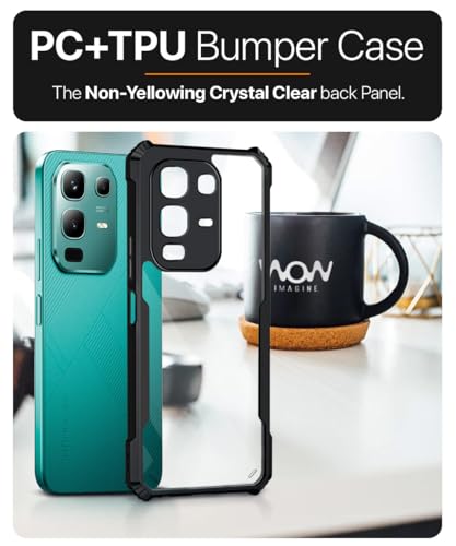 kelpuj Shock Proof Clear Protective Back Case for Infinix Note 50X 5G – AirEDGE Technology | 360 Degree Camera Protection | Transparent Hybrid Back Case Mobile Cover – Black
