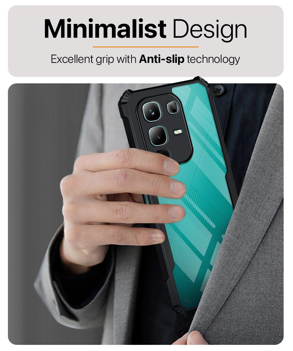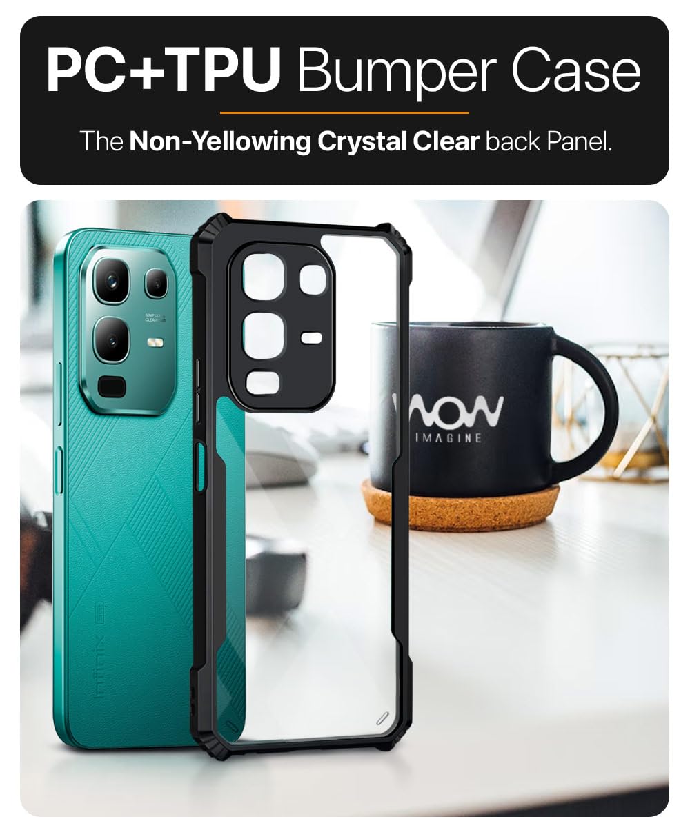 Shock Proof Clear Protective Back Case for Infinix Note 50X 5G – AirEDGE Technology | 360 Degree Camera Protection | Transparent Hybrid Back Case Mobile Cover – Black is designed with premium quality materials to provide superior protection, durability, and style for your smartphone. It offers a perfect balance between functionality and aesthetics, ensuring your device stays safe from scratches, impacts, and daily wear. Engineered with precision, it features accurate cutouts for ports, buttons, and cameras, making it highly convenient for everyday use. The slim and lightweight design ensures that your device retains its sleek profile without adding unnecessary bulk. Whether it is a nano film tempered glass, a hybrid back case, or a camera lens protector, each product is created with attention to detail to enhance the user experience and extend the life of your smartphone. The material used ensures long-lasting clarity, anti-scratch performance, and resistance against fingerprints and smudges. It is the ideal choice for users who want both style and substance in their smartphone accessories. This product from KELPUJ reflects innovation and craftsmanship, making it a reliable accessory that safeguards your investment while maintaining modern appeal.