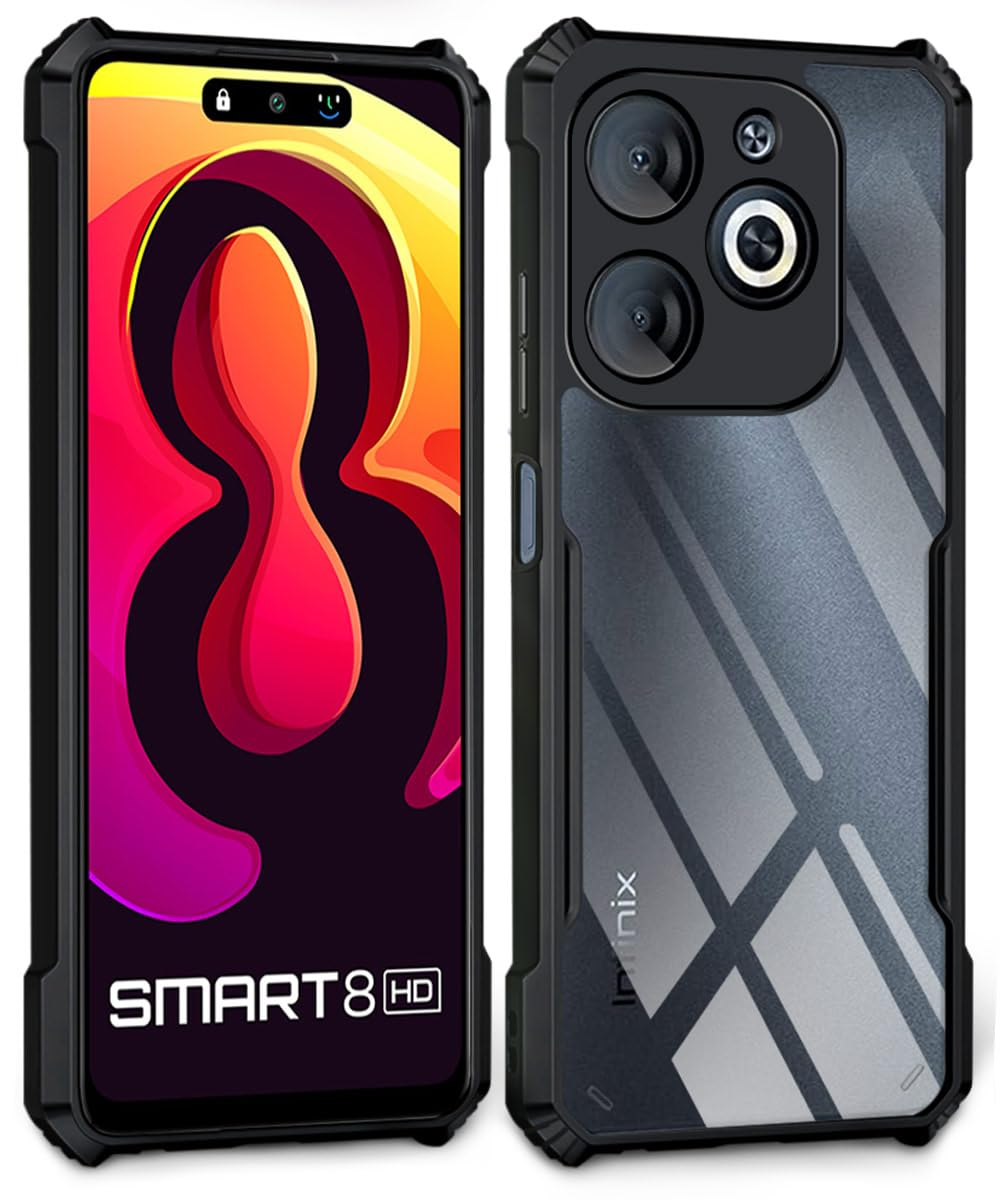Shock Proof Clear Protective Back Case for Infinix Smart 8 HD – AirEDGE Technology | 360 Degree Camera Protection | Transparent Hybrid Back Case Mobile Cover – Black is designed with premium quality materials to provide superior protection, durability, and style for your smartphone. It offers a perfect balance between functionality and aesthetics, ensuring your device stays safe from scratches, impacts, and daily wear. Engineered with precision, it features accurate cutouts for ports, buttons, and cameras, making it highly convenient for everyday use. The slim and lightweight design ensures that your device retains its sleek profile without adding unnecessary bulk. Whether it is a nano film tempered glass, a hybrid back case, or a camera lens protector, each product is created with attention to detail to enhance the user experience and extend the life of your smartphone. The material used ensures long-lasting clarity, anti-scratch performance, and resistance against fingerprints and smudges. It is the ideal choice for users who want both style and substance in their smartphone accessories. This product from KELPUJ reflects innovation and craftsmanship, making it a reliable accessory that safeguards your investment while maintaining modern appeal.