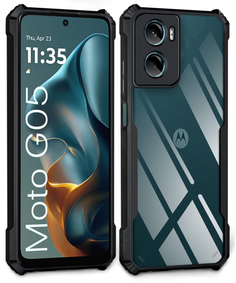 kelpuj Shock Proof Clear Protective Back Case for Motorola Moto G05 – AirEDGE Technology | 360 Degree Camera Protection | Transparent Hybrid Back Case Mobile Cover – Black