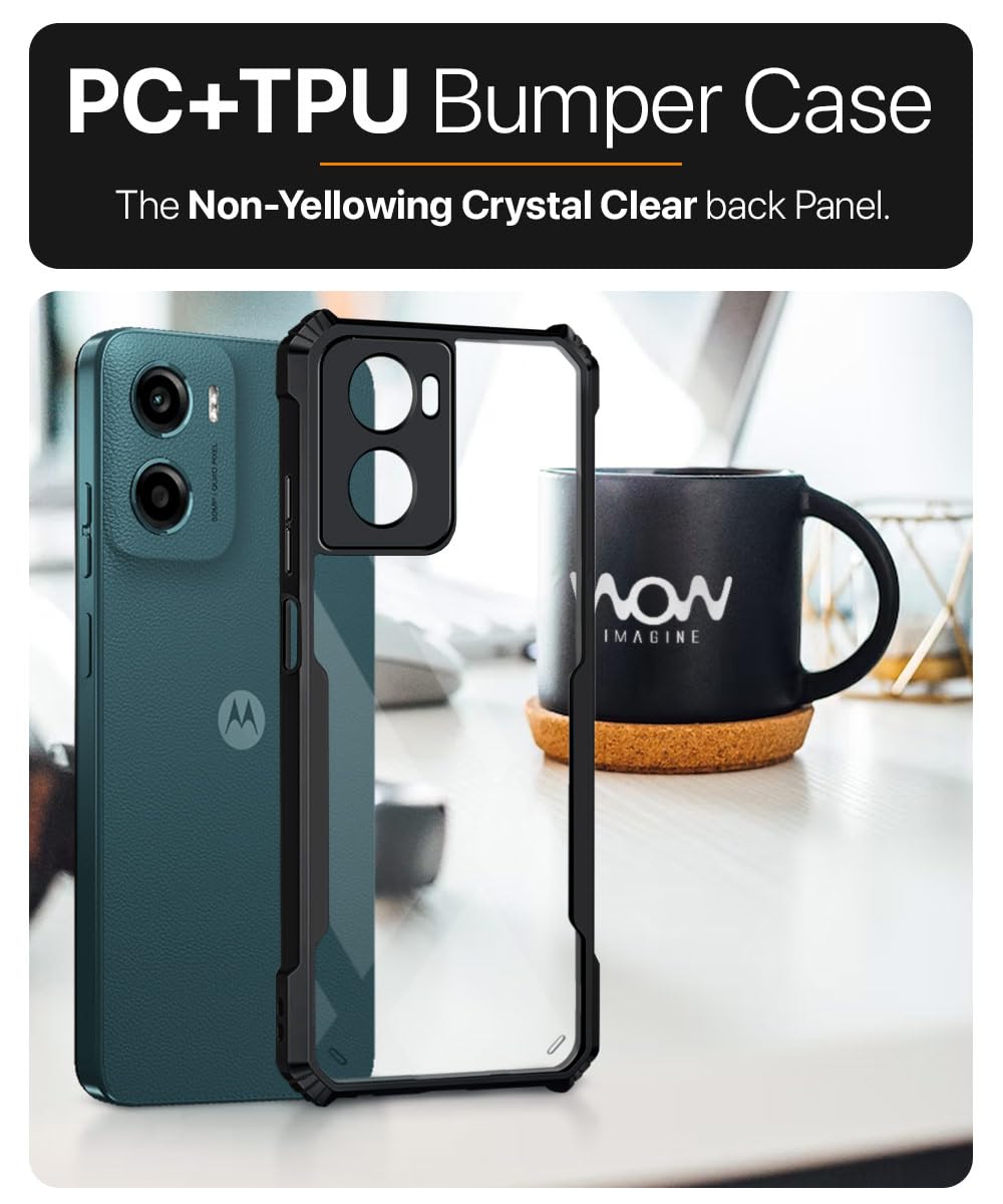 Shock Proof Clear Protective Back Case for Motorola Moto G05 – AirEDGE Technology | 360 Degree Camera Protection | Transparent Hybrid Back Case Mobile Cover – Black is designed with premium quality materials to provide superior protection, durability, and style for your smartphone. It offers a perfect balance between functionality and aesthetics, ensuring your device stays safe from scratches, impacts, and daily wear. Engineered with precision, it features accurate cutouts for ports, buttons, and cameras, making it highly convenient for everyday use. The slim and lightweight design ensures that your device retains its sleek profile without adding unnecessary bulk. Whether it is a nano film tempered glass, a hybrid back case, or a camera lens protector, each product is created with attention to detail to enhance the user experience and extend the life of your smartphone. The material used ensures long-lasting clarity, anti-scratch performance, and resistance against fingerprints and smudges. It is the ideal choice for users who want both style and substance in their smartphone accessories. This product from KELPUJ reflects innovation and craftsmanship, making it a reliable accessory that safeguards your investment while maintaining modern appeal.