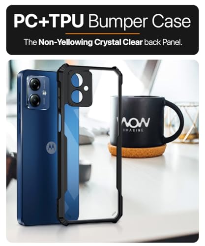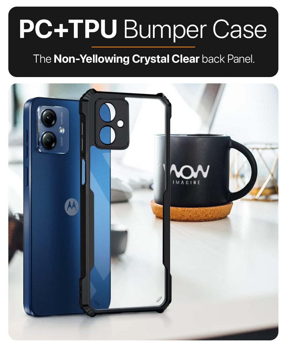 kelpuj Shock Proof Clear Protective Back Case for Motorola Moto G14 – AirEDGE Technology | 360 Degree Camera Protection | Transparent Hybrid Back Case Mobile Cover – Black