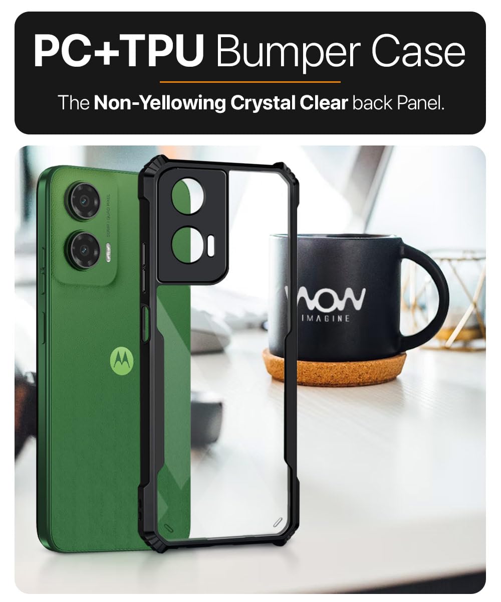Shock Proof Clear Protective Back Case for Motorola Moto G35 5G – AirEDGE Technology | 360 Degree Camera Protection | Transparent Hybrid Back Case Mobile Cover – Black is designed with premium quality materials to provide superior protection, durability, and style for your smartphone. It offers a perfect balance between functionality and aesthetics, ensuring your device stays safe from scratches, impacts, and daily wear. Engineered with precision, it features accurate cutouts for ports, buttons, and cameras, making it highly convenient for everyday use. The slim and lightweight design ensures that your device retains its sleek profile without adding unnecessary bulk. Whether it is a nano film tempered glass, a hybrid back case, or a camera lens protector, each product is created with attention to detail to enhance the user experience and extend the life of your smartphone. The material used ensures long-lasting clarity, anti-scratch performance, and resistance against fingerprints and smudges. It is the ideal choice for users who want both style and substance in their smartphone accessories. This product from KELPUJ reflects innovation and craftsmanship, making it a reliable accessory that safeguards your investment while maintaining modern appeal.