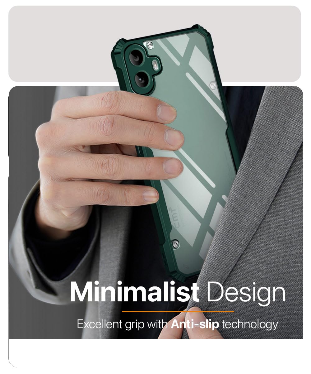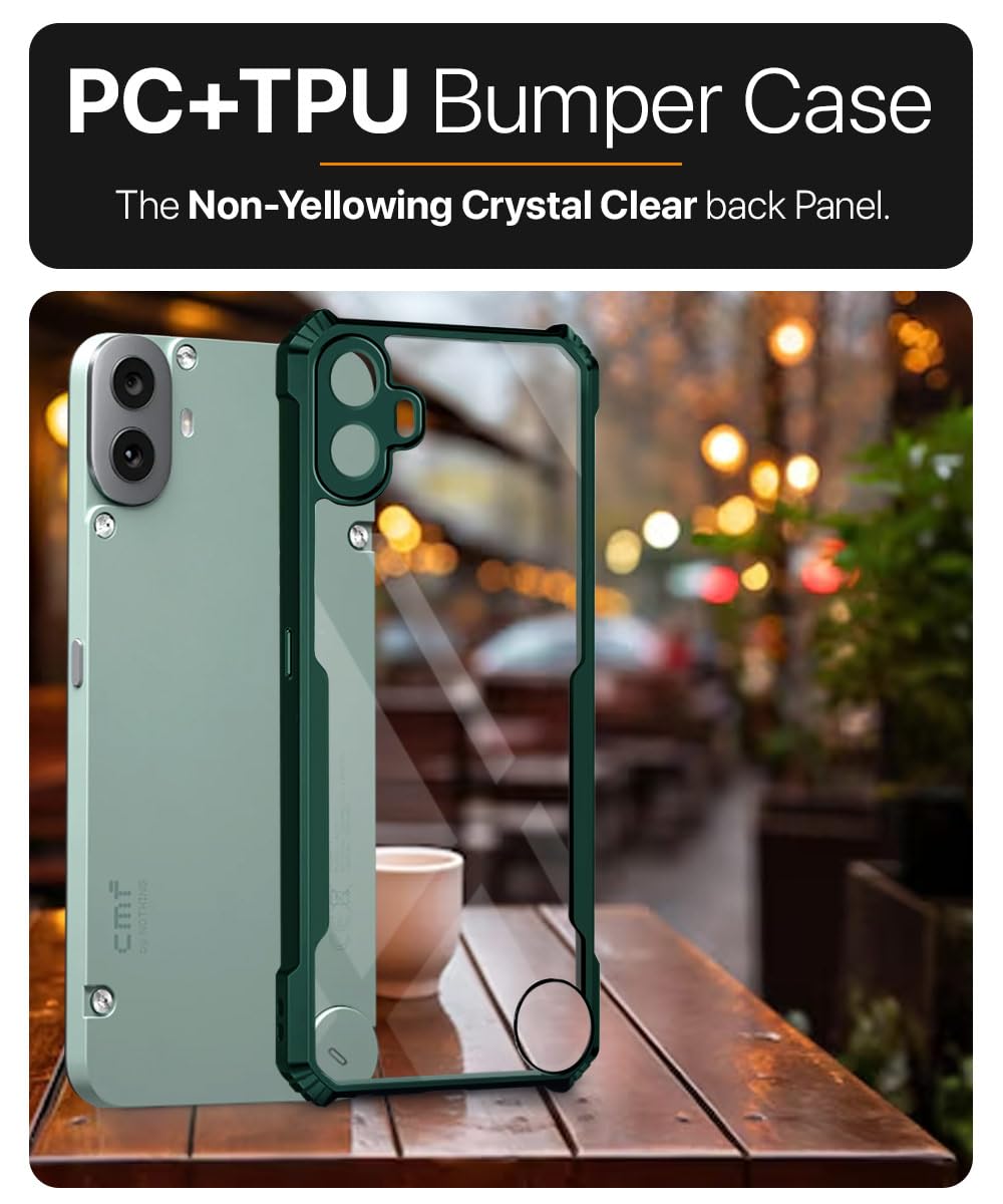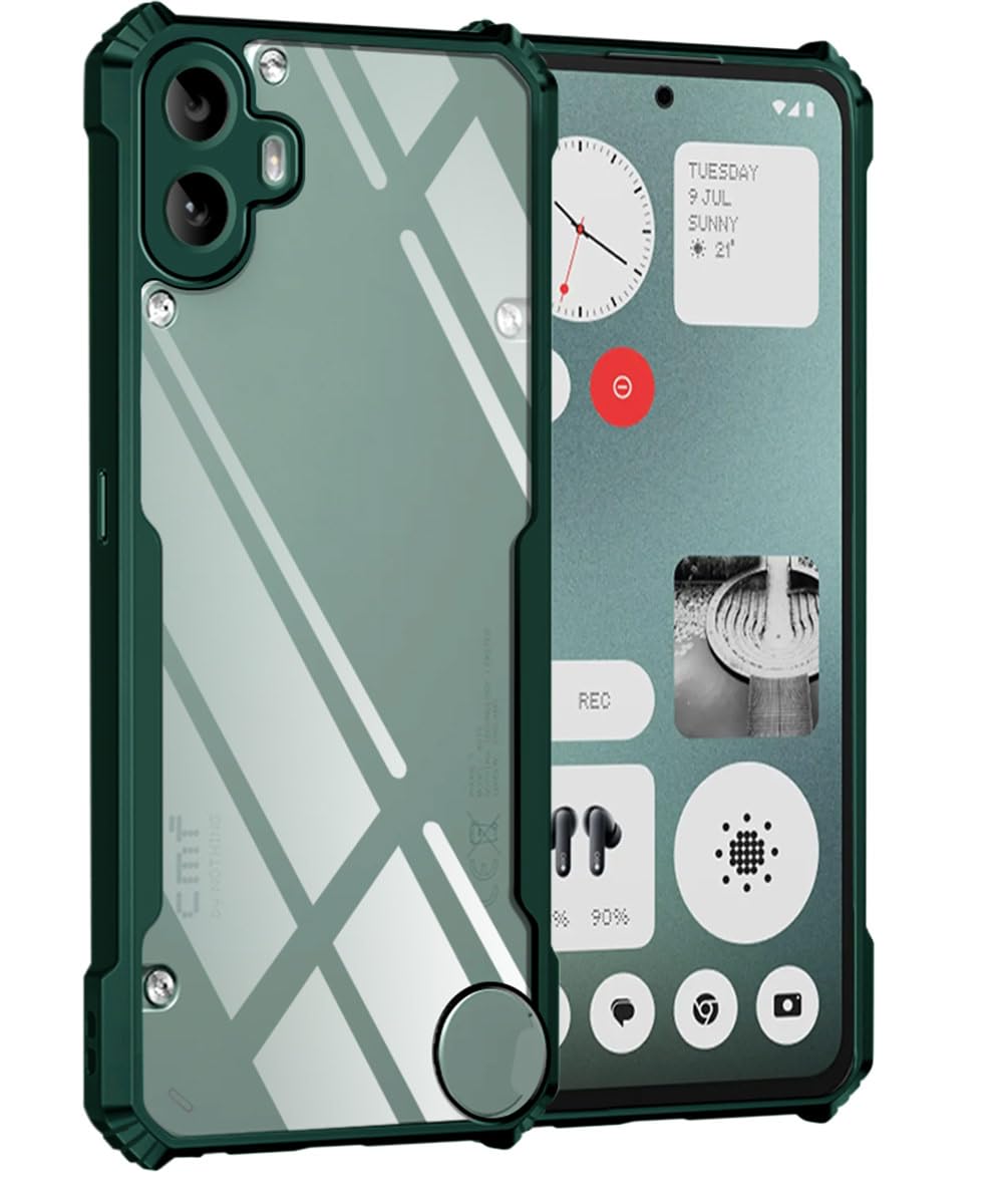 kelpuj Shock Proof Clear Protective Back Case for Nothing CMF Phone 1 – AirEDGE Technology | 360 Degree Camera Protection | Transparent Hybrid Back Case Mobile Cover – Green