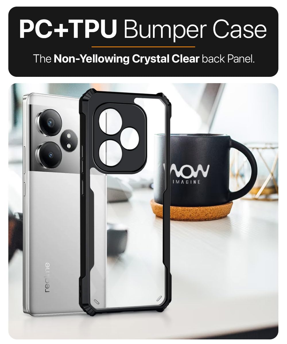 kelpuj Shock Proof Clear Protective Back Case for Realme GT 6T 5G | Realme GT 6 – AirEDGE Technology | 360 Degree Camera Protection | Transparent Hybrid Back Case Mobile Cover – Black
